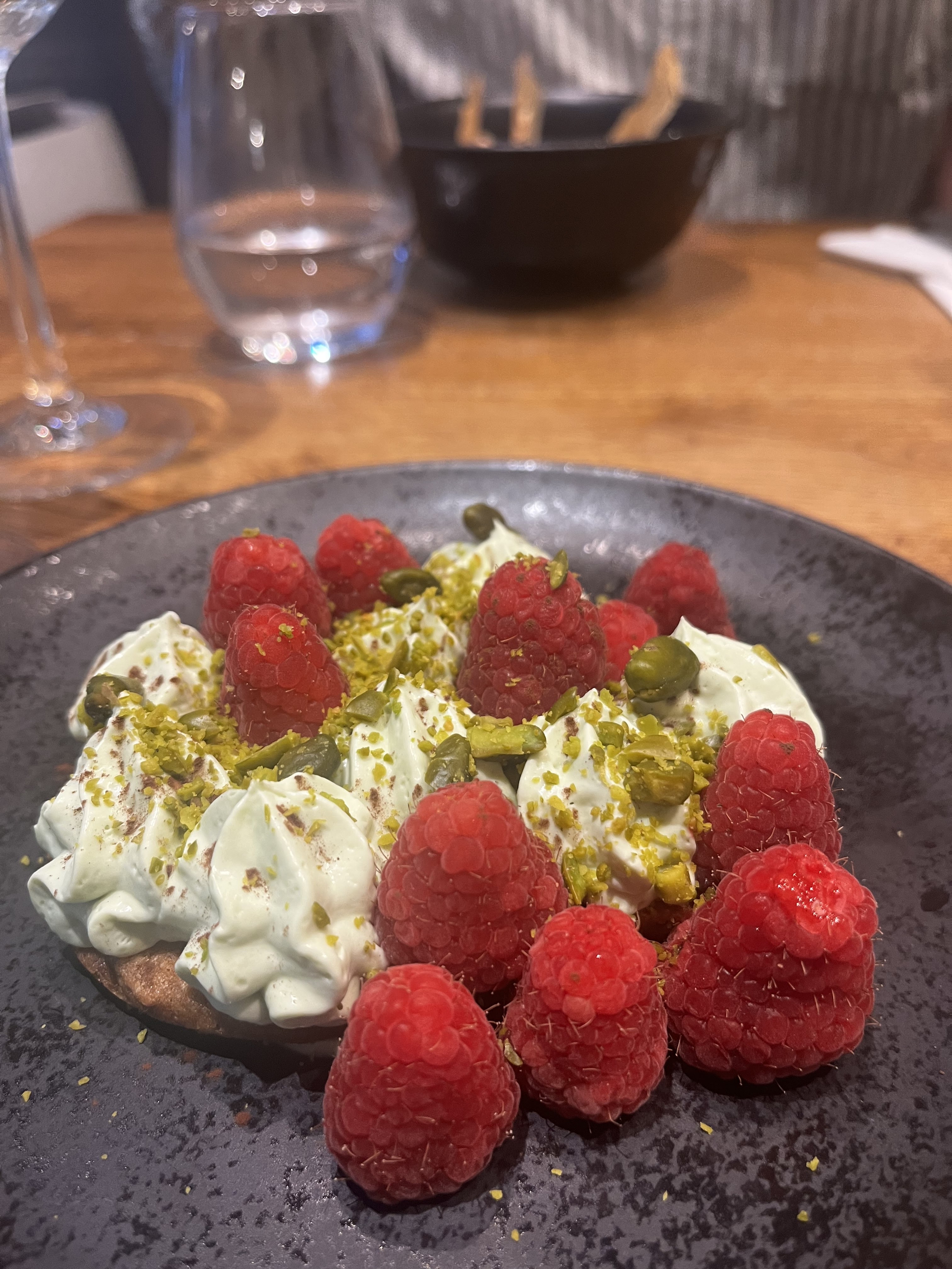 Nous sommes entrés avec 0 attente car nous avons eu une réservation via The Fork à la dernière minute, mais… c'était le meilleur repas que nous ayons eu jusqu'à présent à Paris ! Nous avons eu: -Mi-cuit de canard quatre Gars avec confiture d'échalote -Tartare de daurade -Poisson du jour, compote de fenouil et agrumes, caviar d'aubergine - Sablé breton pistache framboise - Croustillant au chocolat Je n’ai pas vraiment fait beaucoup de photos (à part le tartare et les desserts), car on avait tout simplement oublié ! Recommande fortement! Les poissons et les desserts sont à tomber par terre