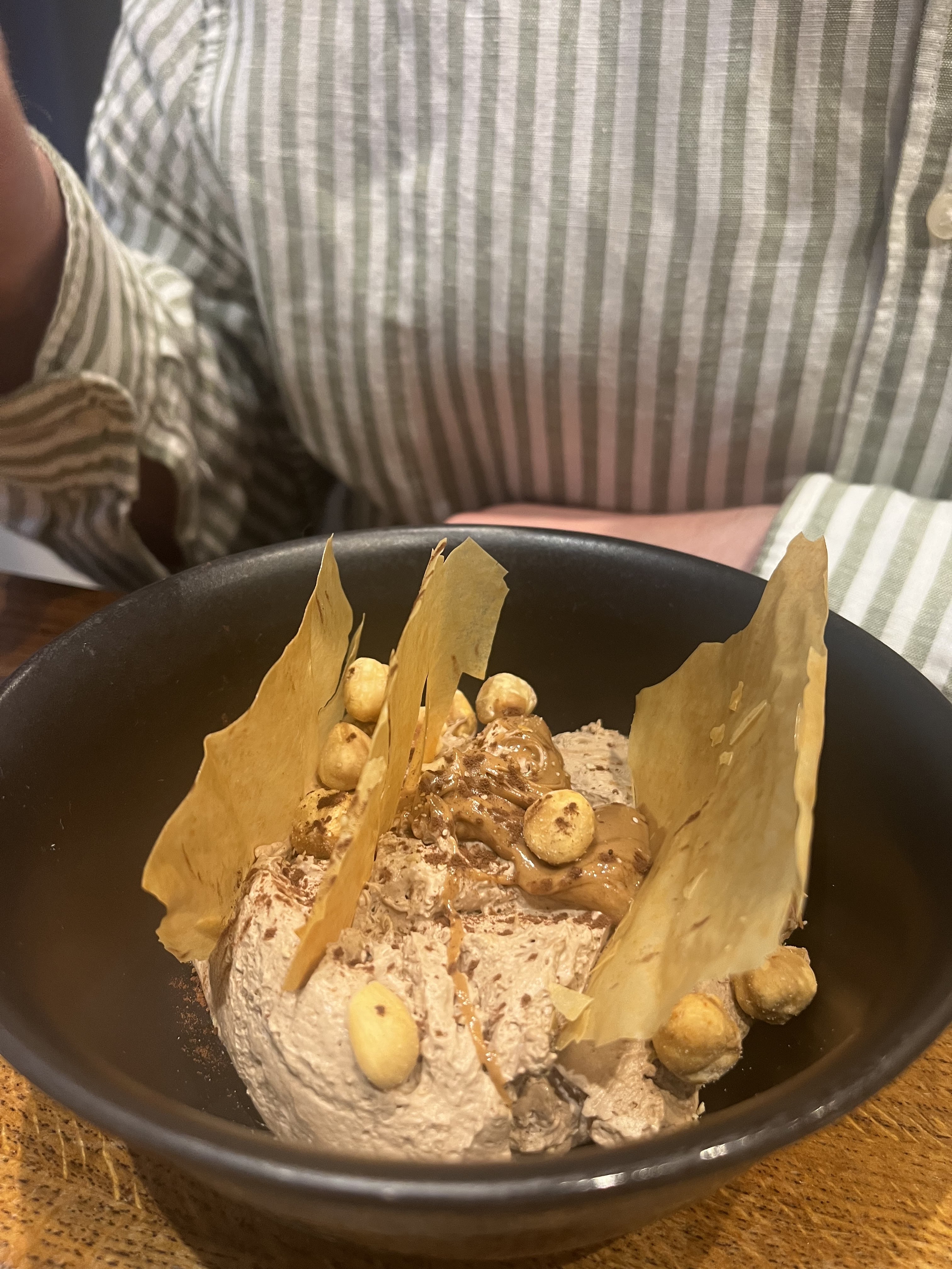 Super expérience tant avec la nourriture qu'avec le service. Toutes les entrées étaient très savoureuses et le serveur était sympathique. Cela peut être un peu cher (~60€ par personne pour l'entrée, le plat, le vin et le dessert), mais ça vaut le coup. Je le recommanderais.