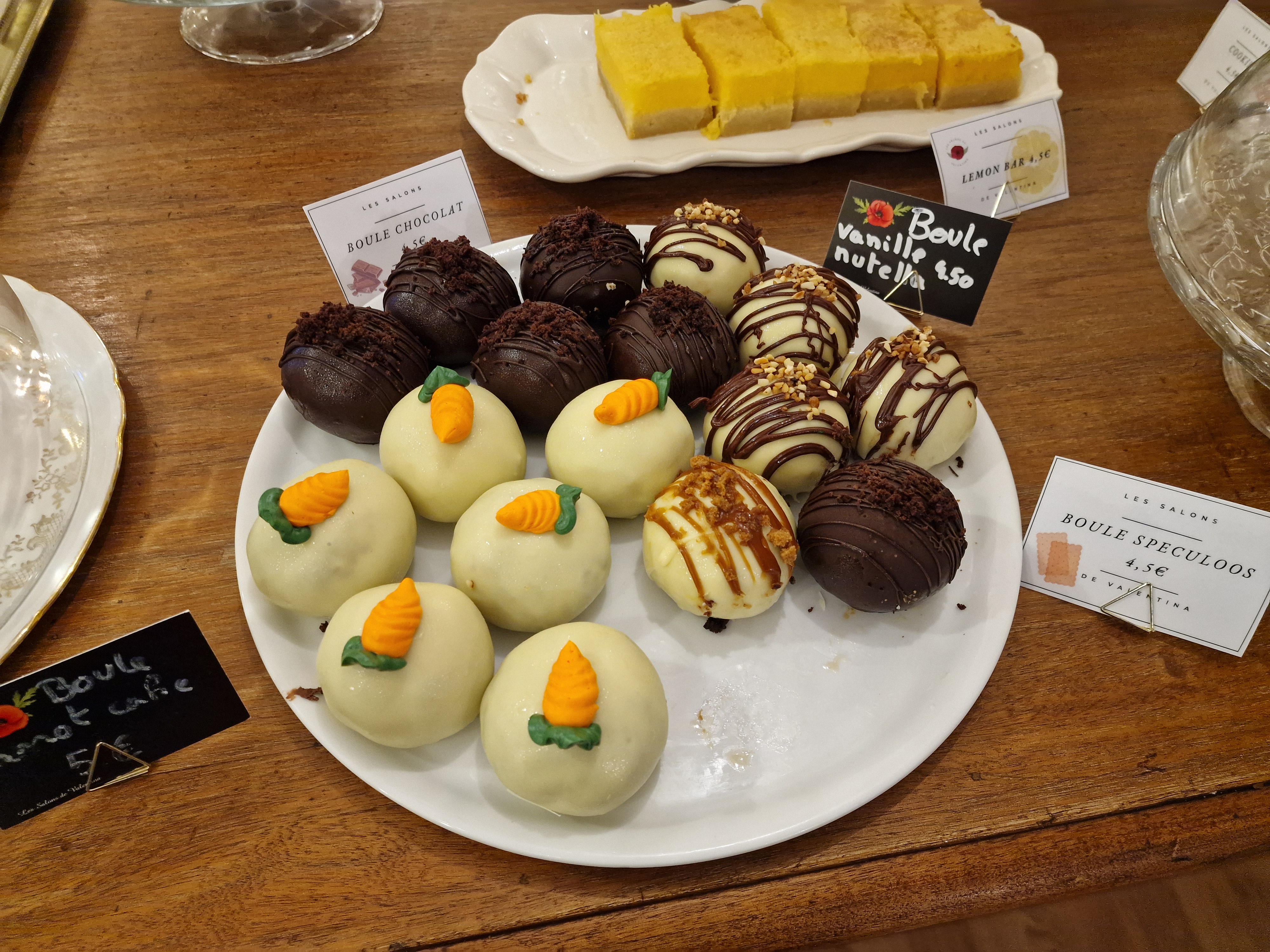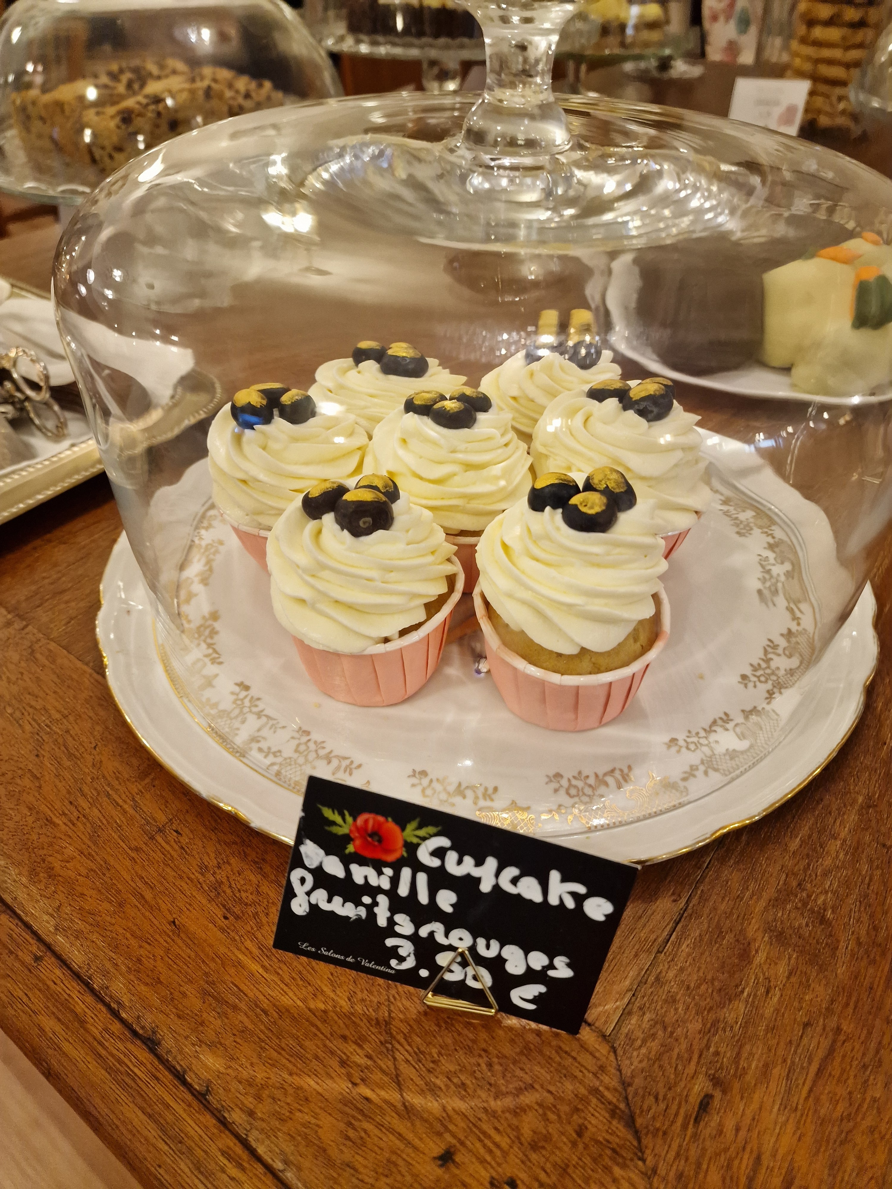 Je suis entré par hasard pour le cadre qui paraissait attrayant, mais malheureusement trop cher pour des gâteaux quelconques.