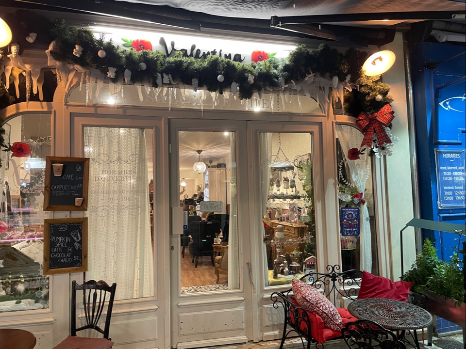 La décoration des salons de Valentina est juste exceptionnelle et magnifique! Nous sommes toujours très bien accueillis. Les pâtisseries sont excellentes! Nous avons également eu l'occasion d'y déjeuner un midi et nous nous sommes régalées! Lieu à visiter absolument!