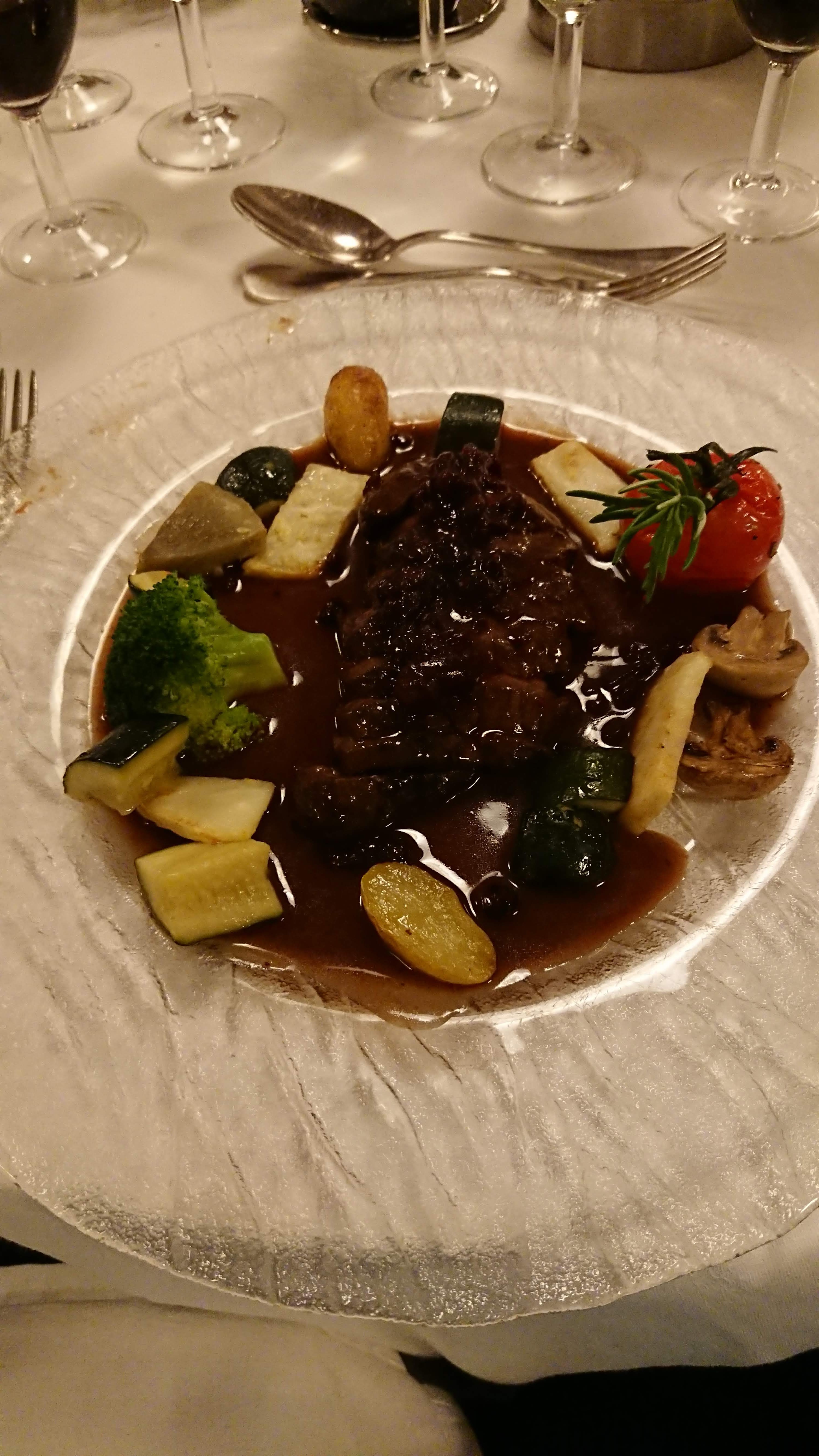Un peu léger dans les assiettes. Une seule omelette norvégienne pour une trentaine de personnes, j'ai eu une lamelle de glace dans mon assiette !! çà faisait minable sur le charriot de présentation. La tranche de glace devait peser 40 grs !! Déçue !! Sinon l'accueil du serveur à la barbe très bien, souriant et très gentil.