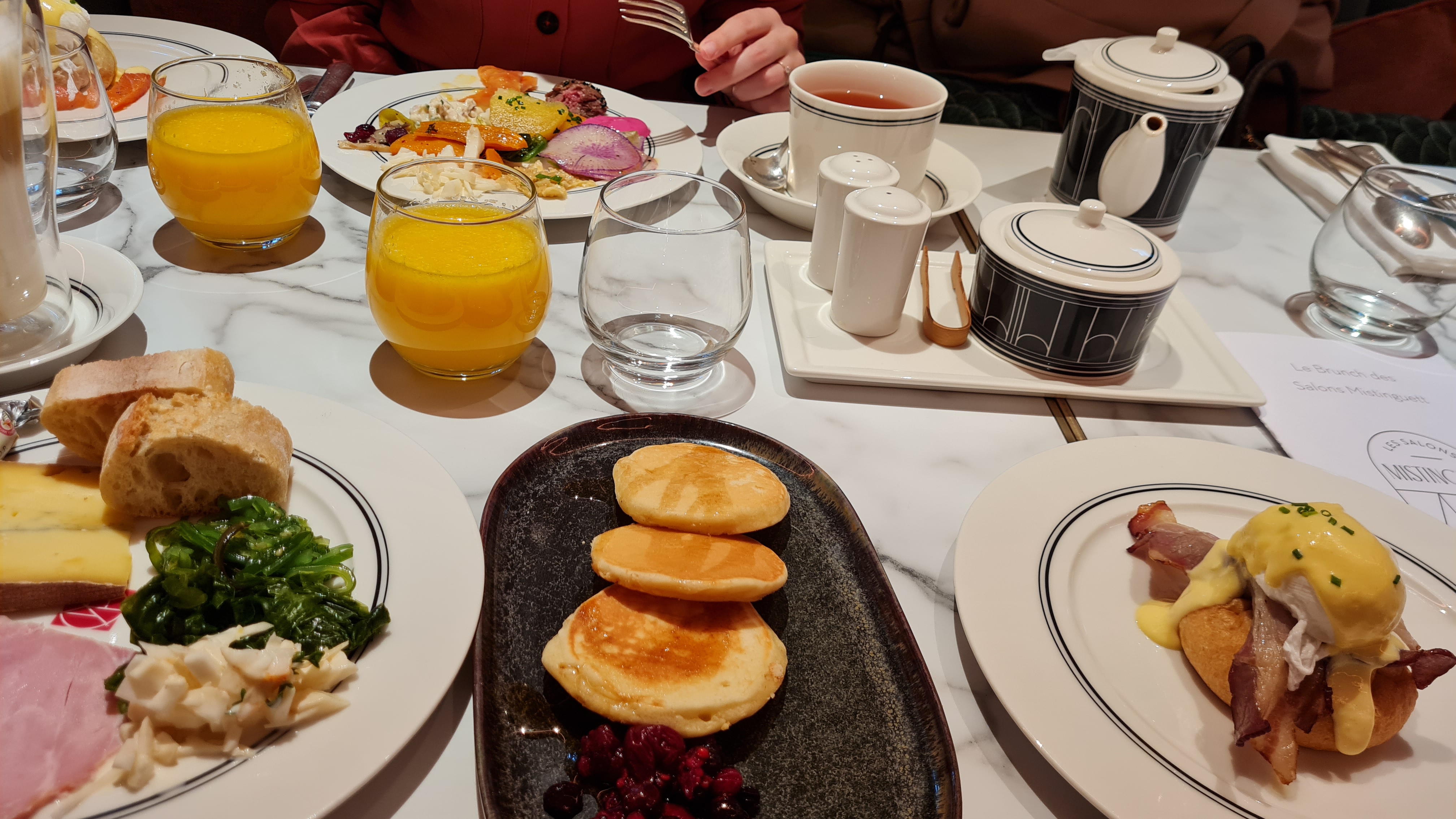 Ambiance authentique, art déco, charmant, très appréciable pour se perdre dans le temps tout en savourant son brunch du Dimanche. Formule Brunch à volonté, de quoi raviver les plus gourmand. La carte propose des plats en adéquation avec l'idée du brunch tout en respectant l'originalité et l'esthétique du lieu. Il est appréciable de pouvoir jongler à son bon vouloir entre les plats de la carte et les aller-retour vers le buffet petit-déjeuner très bien garni et de qualité de l'hôtel. Le service y est agréable, souriant, efficace, très professionnelle. Il est vrai que à première vue le tarif par personne peut sembler un peu élevé pour les habitués du Brunch sur Strasbourg. Mais après avoir franchi le grand escalier en marbre jusqu'au premier étage et découvert l'esthétique du lieu, la qualité, la profusion et le choix divers et sans limites des plats, sucrés et salés. Le tarif devient une bagatelle qu'on oubliera bien vite assis confortablement sur les banquette des salons Mistinguett. Nous y reviendrons bien vite !