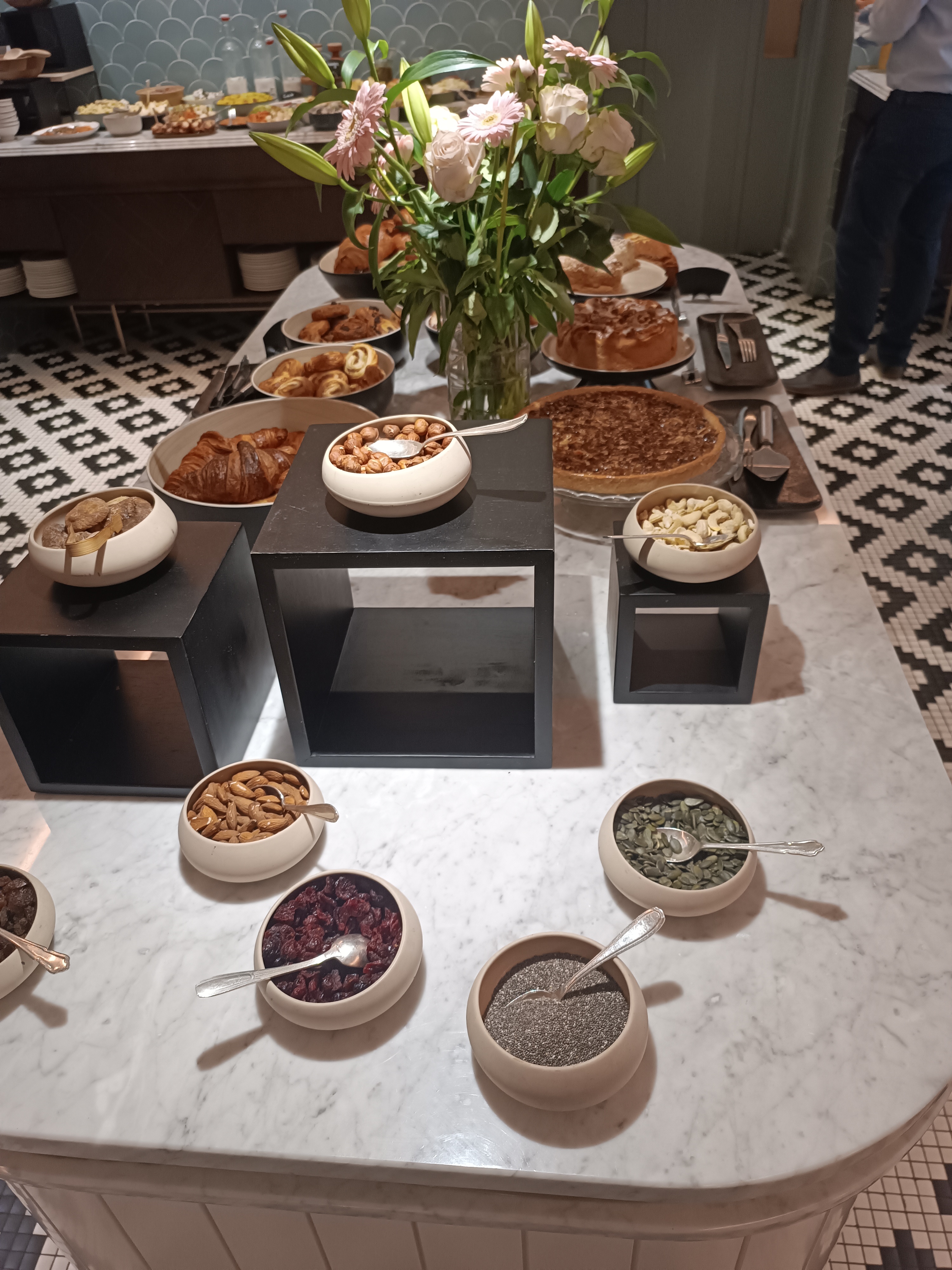 Le rapport qualité/ prix est moyen voire un peu cher au regard de la variété des produits offerts ainsi que d’autres brunchs que nous avons faits. C’est bon mais cela ne casse pas 3 pattes à un canard. Typiquement au niveau des plats chauds: pas de choix- 3 plats chauds, 3 plats servis avec des œufs. Gravlax Bénédicte, Bénédicte ou Œufs brouillés 🙁. Néanmoins, c’est bon. Les Hors d’œuvre et les viennoiseries: très bons surtout le tofu mariné et les légumes. Simples mais goûteux. Les plats en cocotte Staub: bons mais pas très recherchés: bacon saucisse et volaille au curry Les fromages: pas très variés, uniquement des fromages à pâte pressée Les desserts: idem. L’ensemble est correct, le personnel est proactif et professionnel.