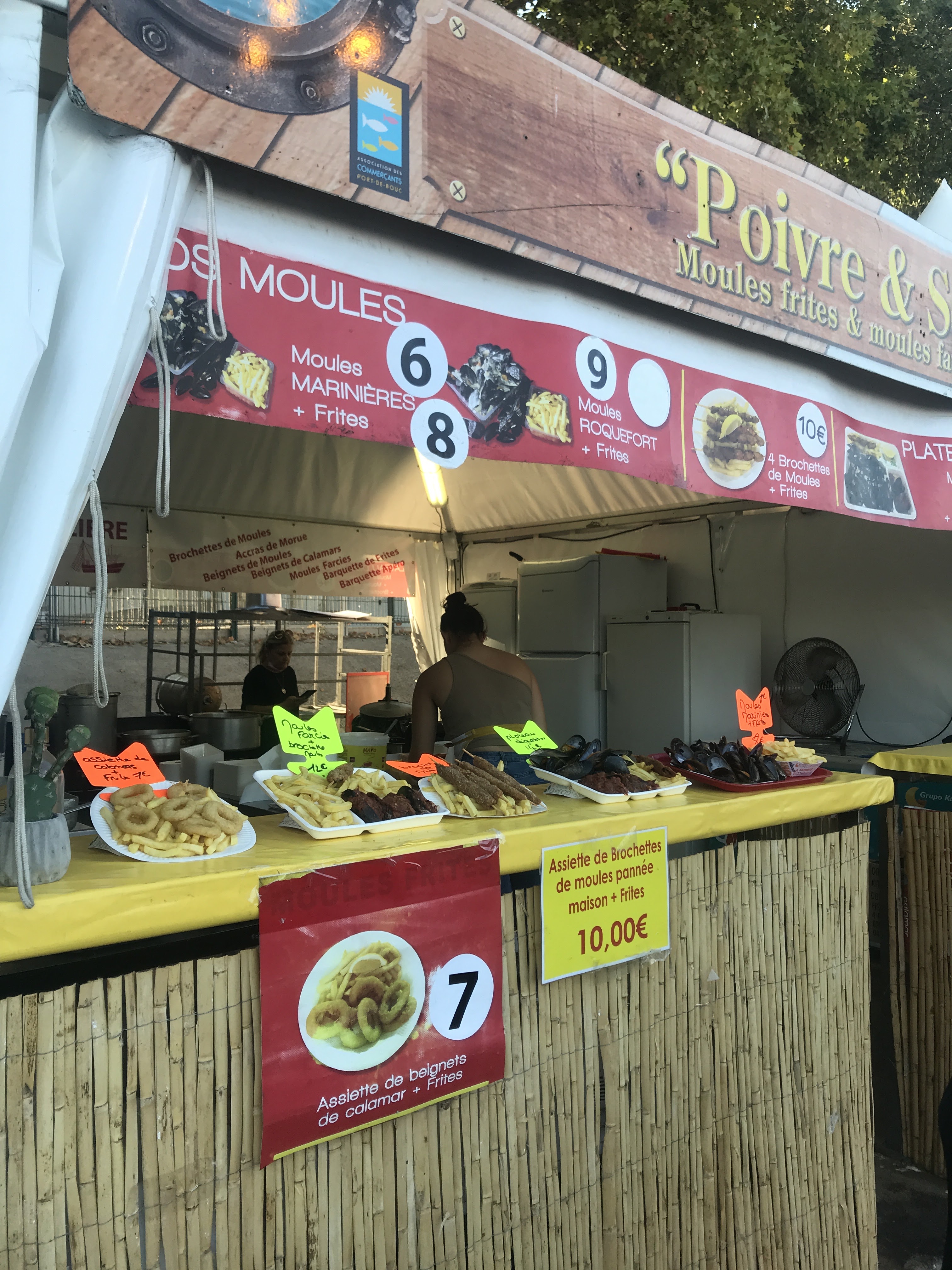 Beaucoup de choix, qualité prix et bonne ambiance. Un incontournable chaques années Attention cette année au stand poivre et sel moule pas fraîche qui pue fortement. Intoxications à venir. Plusieurs assiettes retournées et remboursées d'as la soirée. En revanche stand sardines, au thon grille et o poisson grillé au top !