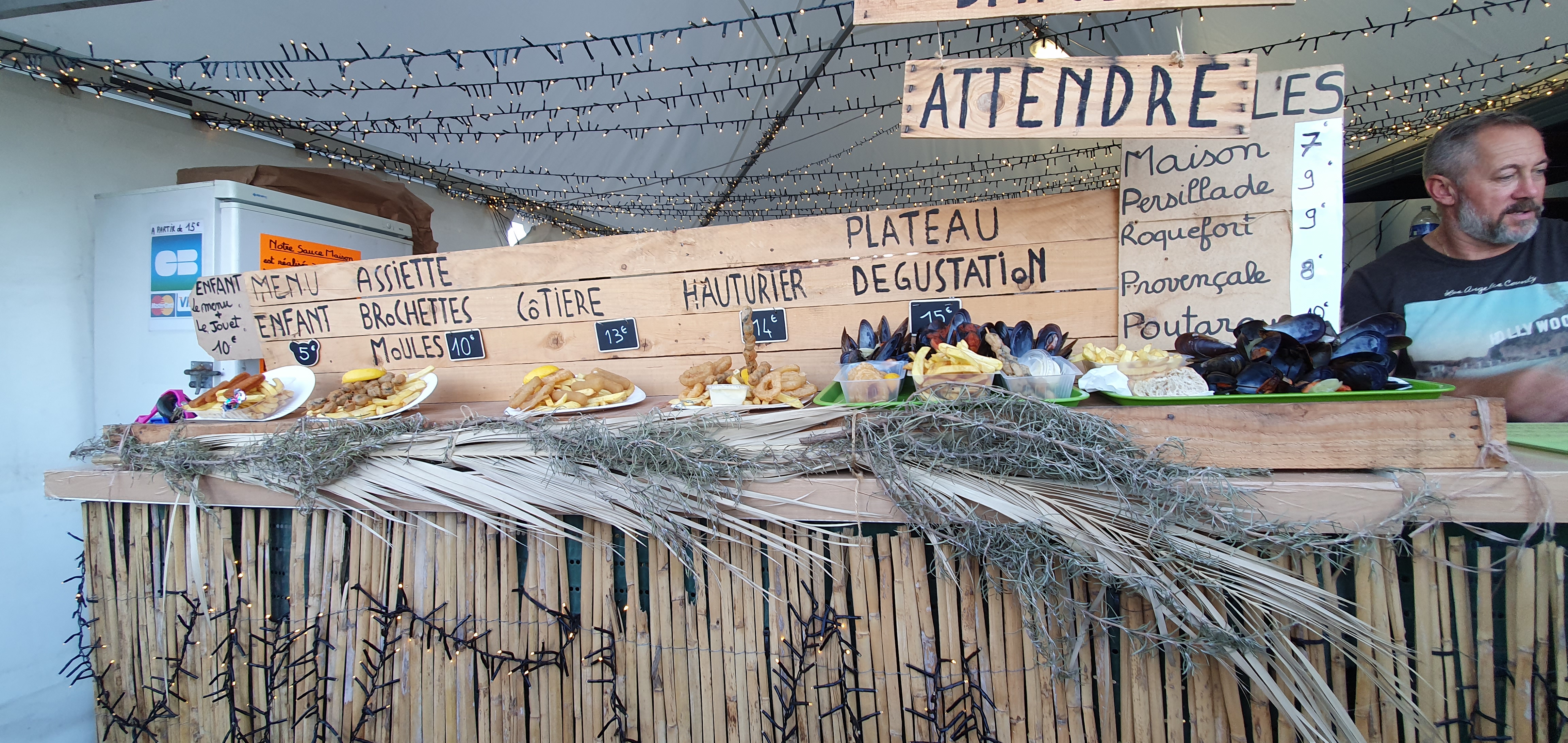 Il faut vraiment y aller au moins une fois ça vaut le détour. Les fruits de mer sont bon bien assaisonnés. Nous y allons chaque années et nous allons au stand de Ricomer c'est excellent. Tout est cuit en direct . Il faut compter entre 10 et 18 euros par personne et les assiettes sont très bien garnies. Il y a aussi des stand de pizza kebbab. .. Il faut prévoir du liquide car le bar (à part des stands ) ne prends pas la CB alors que les stand oui en général.