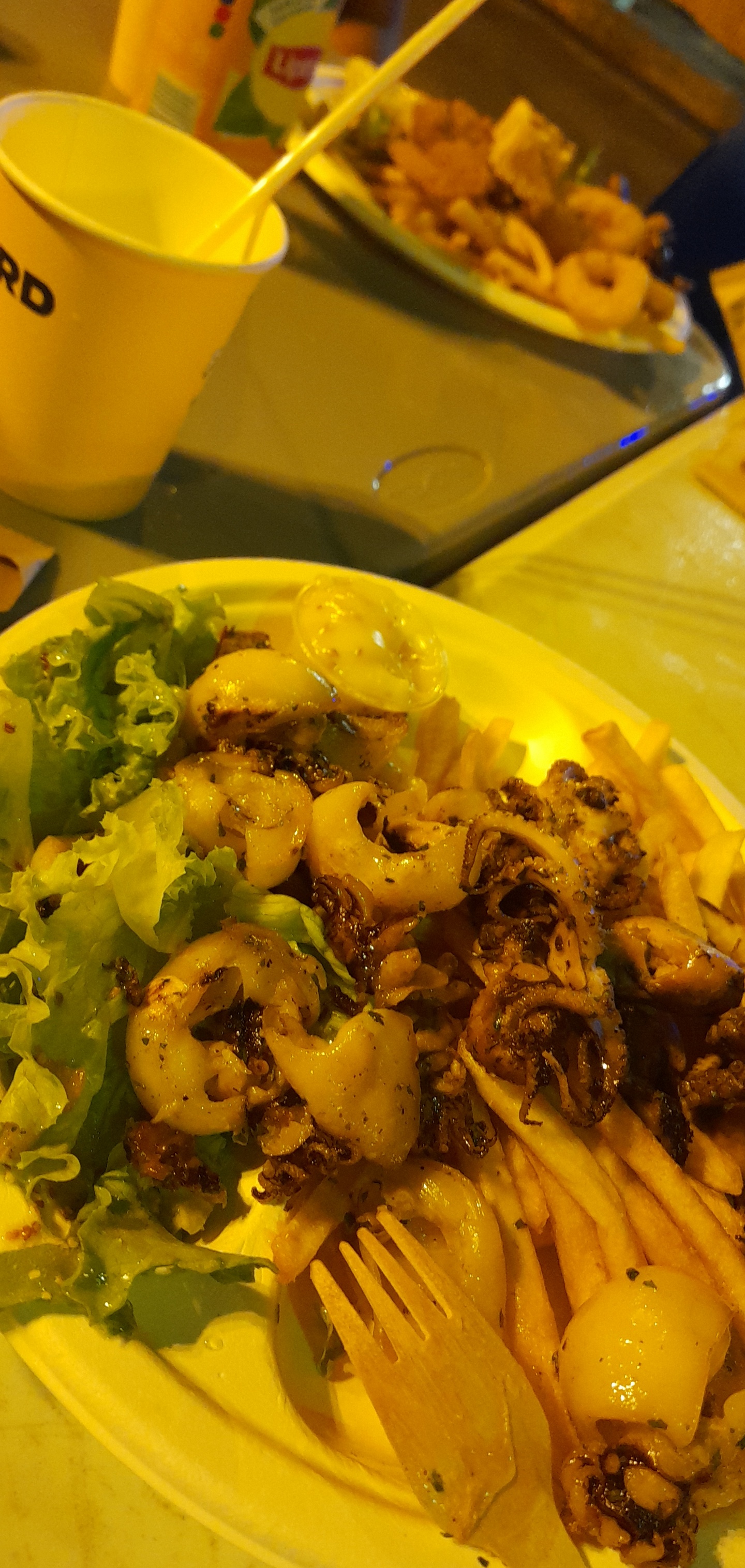 Pas mal de choix de plat mer, mais le goût n'est pas terrible ou très legé ou encore beaucoup trop salé.. la CB est acceptée qu'à partir d'une quinzaine d'euros. Il y a même pas de rince doigts de donner ni même de couvert à certain stand.. pas de sauce donner non plus pour les frites.. les plats étaient froid et on sentait bien que ça faisait un moment que ça avait été fait.. Niveau animation : une scène avec une femme qui chantait, et 3 manèges (pêche aux canards, hélicoptère et le saut à l'élastique pour les enfants)