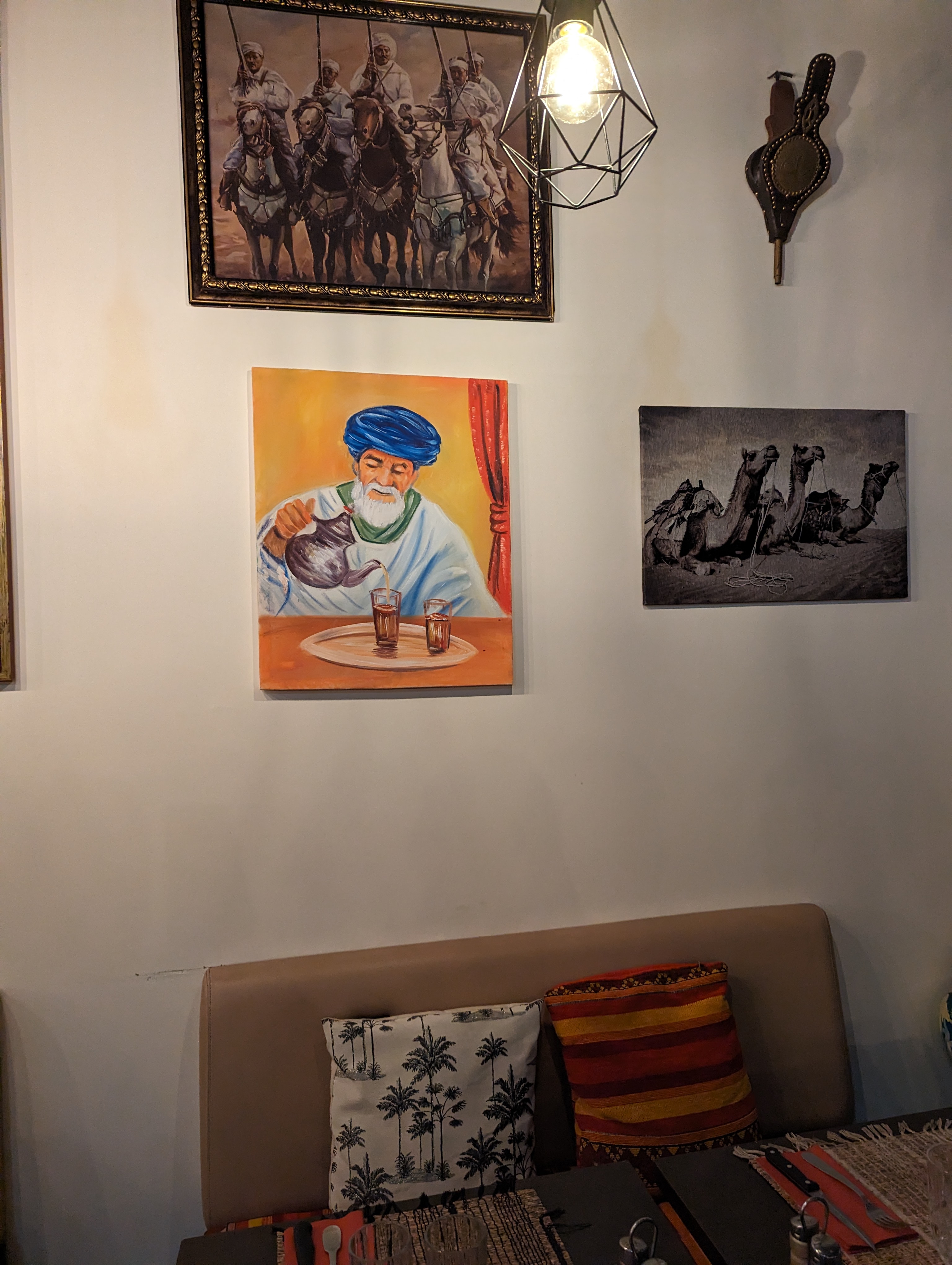 C'est comme si vous vous asseyiez pour déjeuner chez votre tante marocaine. Tout est clairement fait maison avec soin. Bien mieux que ce à quoi on pourrait s'attendre. Un grand trou dans le mur trouvé.