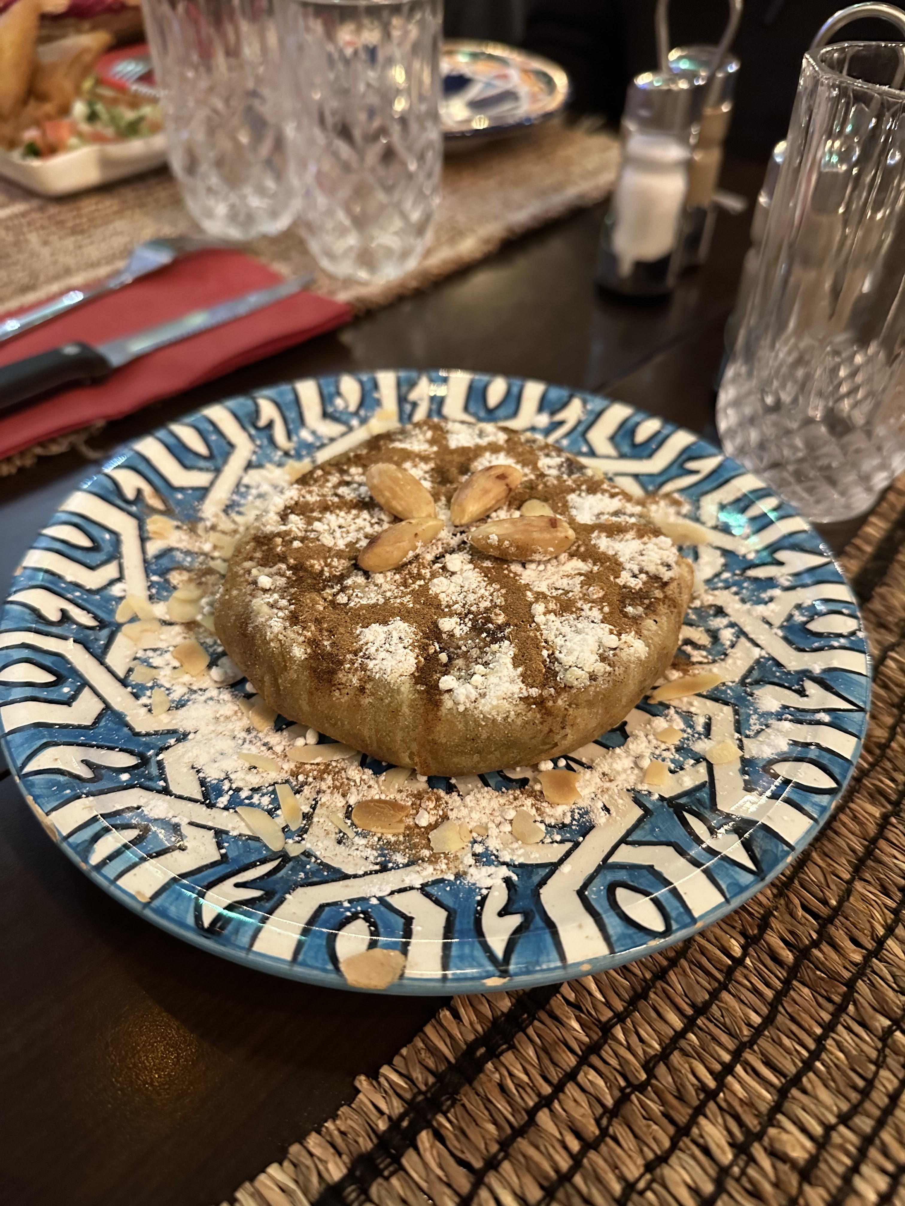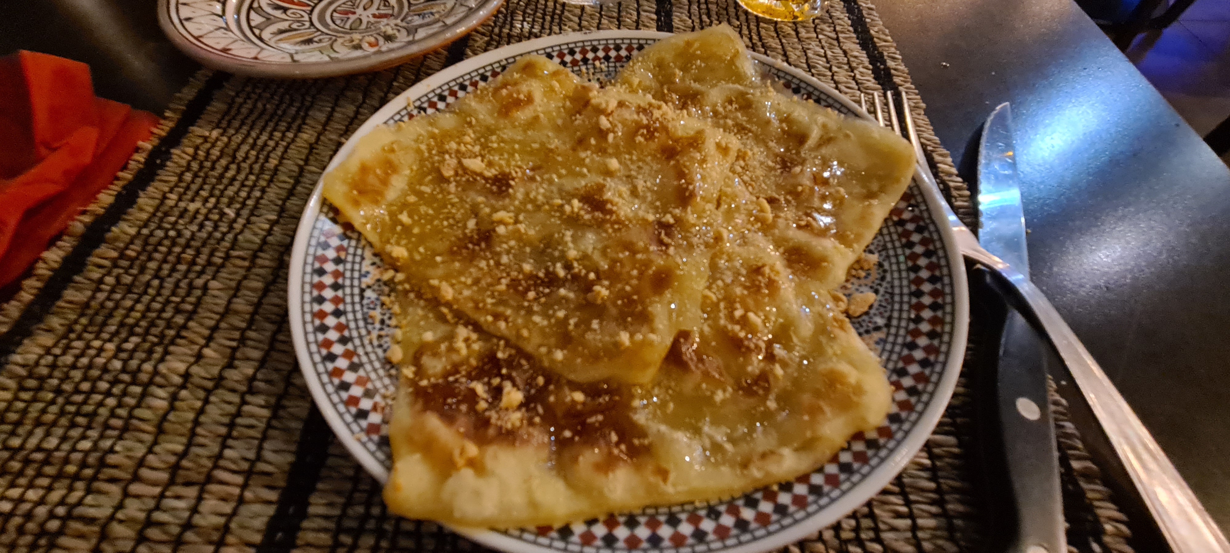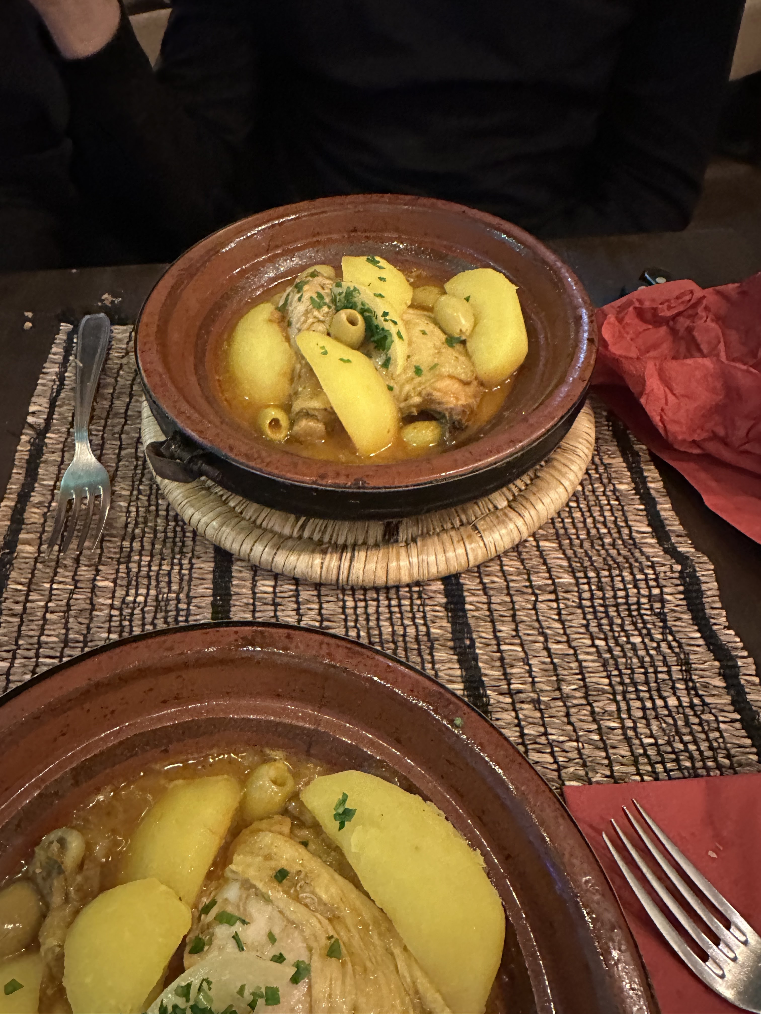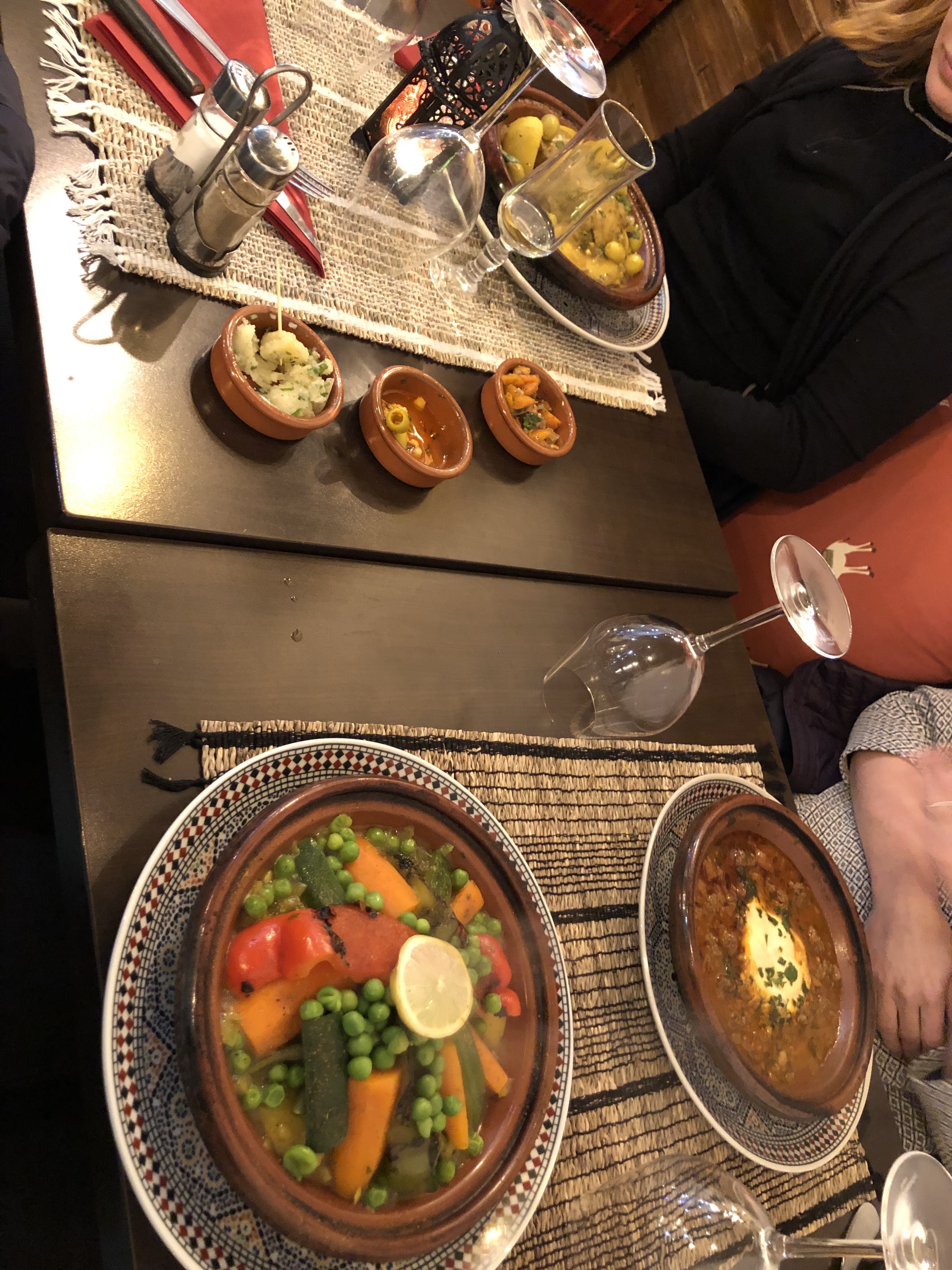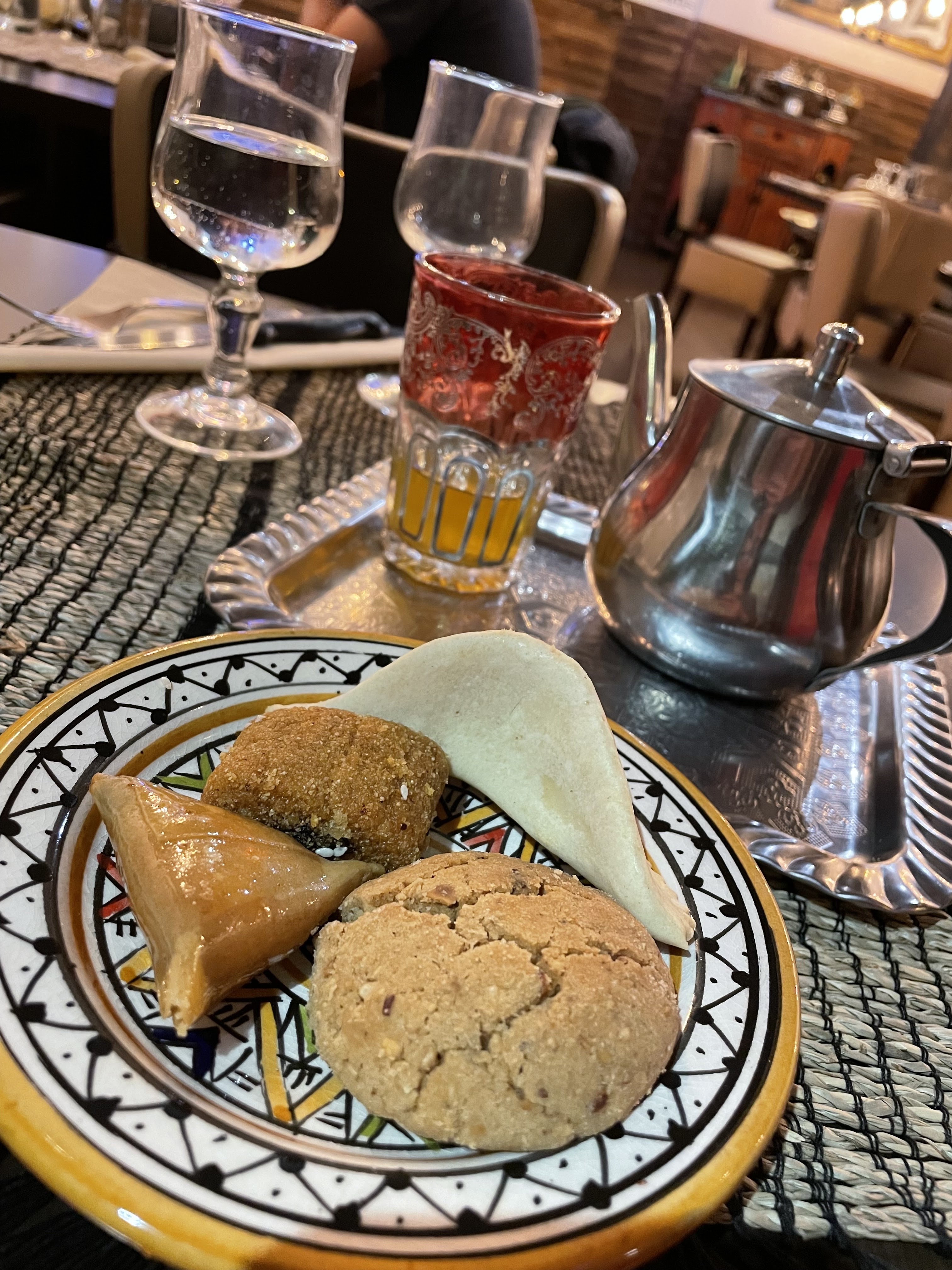C'était notre dernier dîner en France, c'est un restaurant marocain, j'aime vraiment tout ce qu'ils servent, de la pastila au tajin en passant par le thé marocain, si je reviens en France, je reviendrai au restaurant