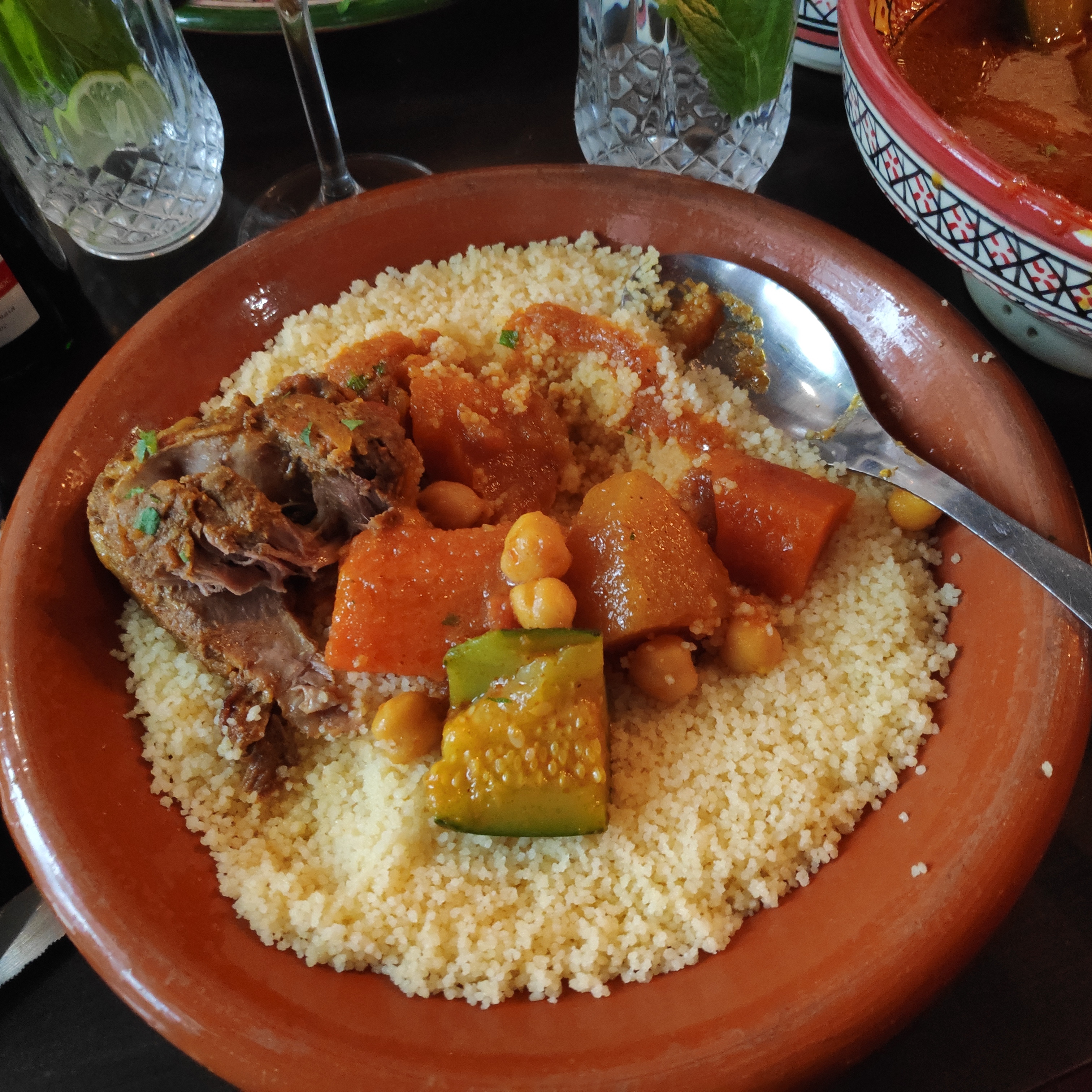 Petit restaurant sympathique et très joliment décoré . Le couscous à l’agneau était bon (semoule et légume) la viande était bonne mais je pense que je prendrai le poulet la prochaine fois pour tester!