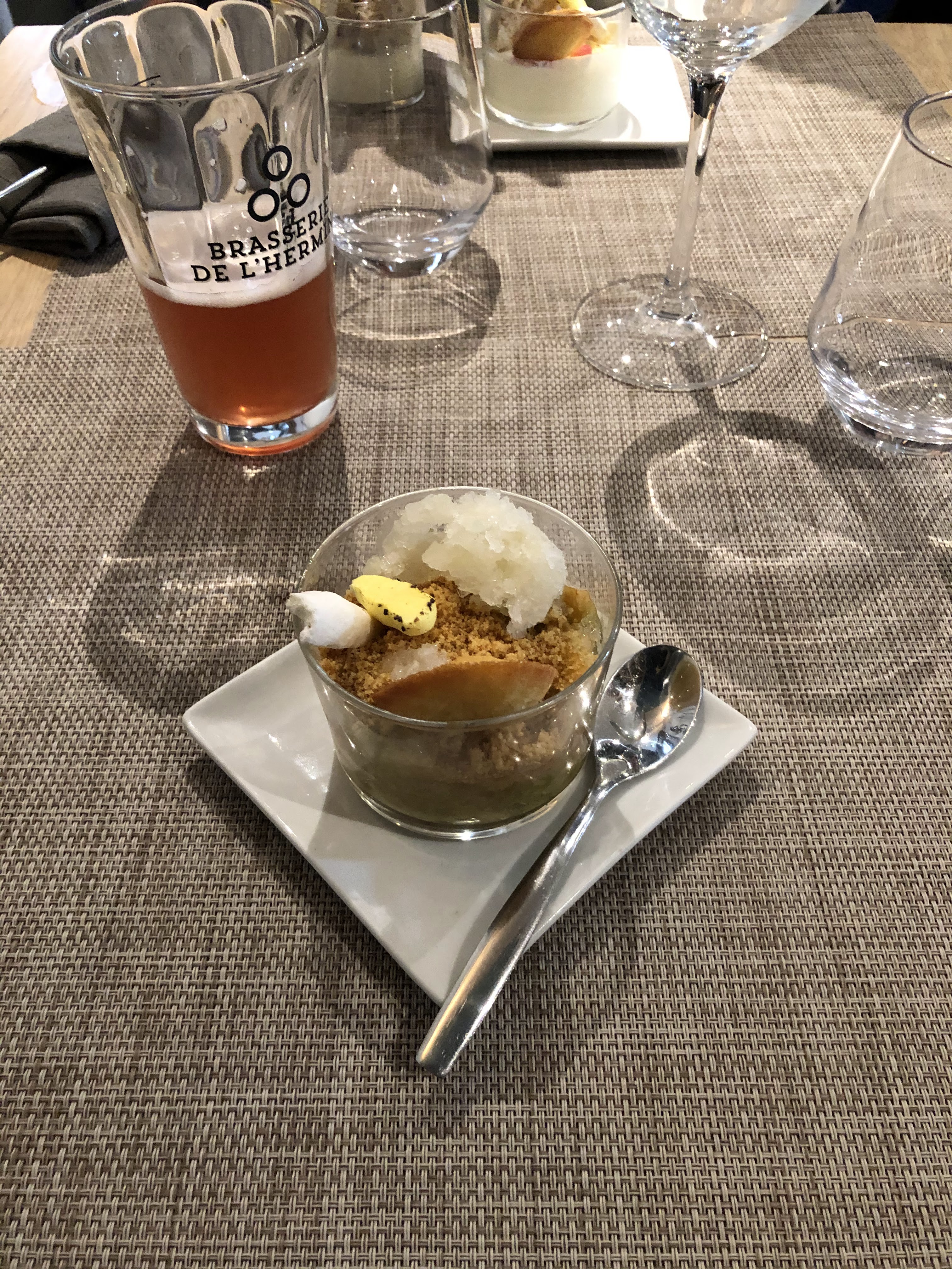 L'amuse bouche et les cannellonis d'aubergines étaient excellents. Par contre mon conjoint a eu un carré d'agneau avec 2/3 de gras, et mon dessert était encore congelé, c'est dommage. Cela a gâché notre expérience. Cependant le personnel était serviable et efficace.
