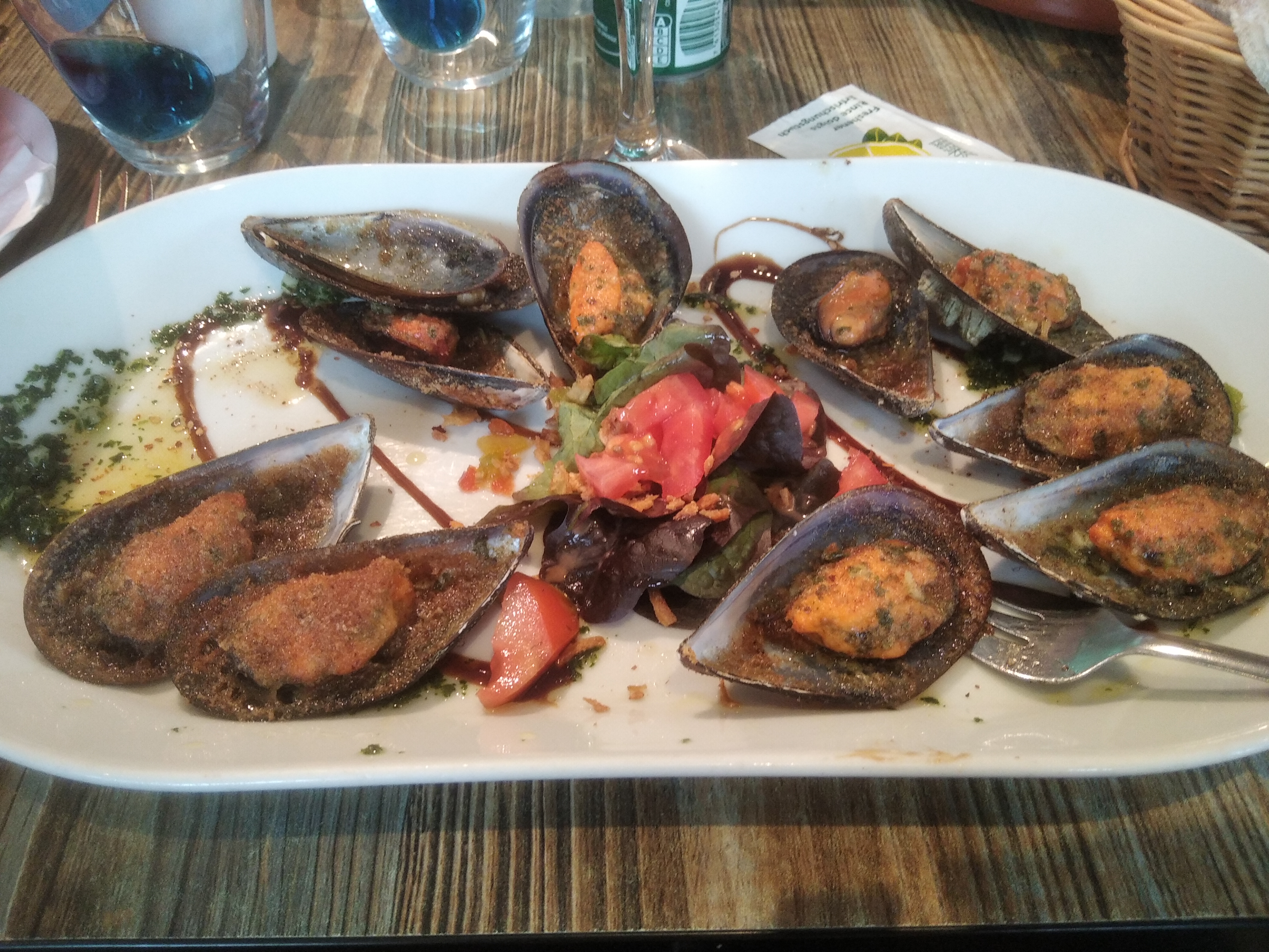 Nous avons commandé des moules avec Roquefort. Le roquefort était dissous dans le bouillon et les moules n'avaient aucune saveur. Ce n'est qu'à la fin que le bouillon est venu avec le roquefort. Comme le fromage était dissous dans le bouillon, il ne restait pratiquement aucun goût. C'était juste salé. Les frites étaient également bien salées. Les points sont attribués pour le bon service.