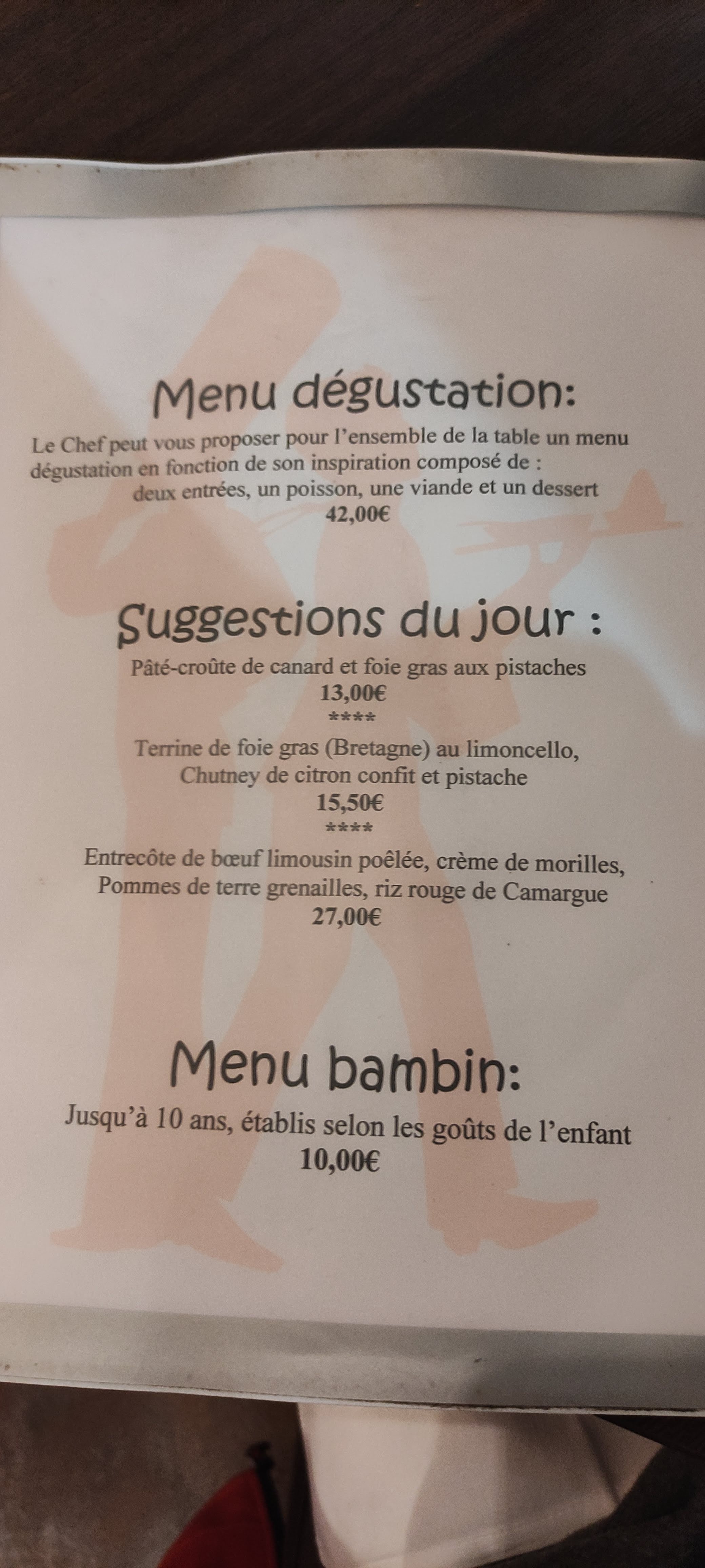 Bonsoir , il me semblais que la carte était un peu plus varié, la carte sur internet n est pas le reflet de celle que l on nous propose. Les entrées un peu petites mais très bonne .et il faut que le serveur nous laisse un peu prendre notre temps .j avais déjà testé ce restaurant et la je suis un peu déçu. Je resterais pour me refaire une impression.