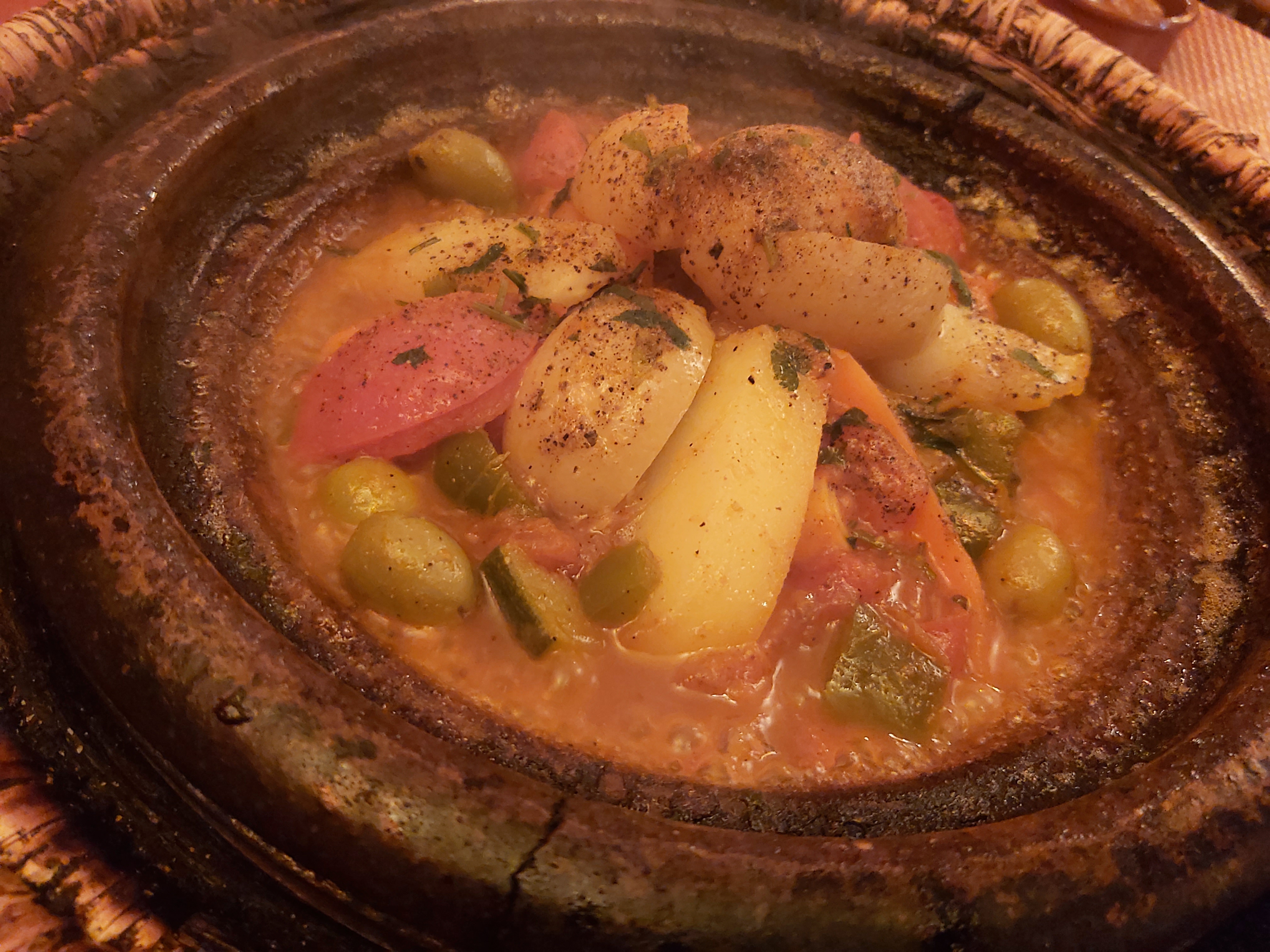 Salade de fruits frais proposé mais dans la coupe c'est en réalité très mélangé avec de la salade de fruits conservé. Tajine berbère aux 7 légumes sympa à la presentation mais decrption au palais goût de frigo.