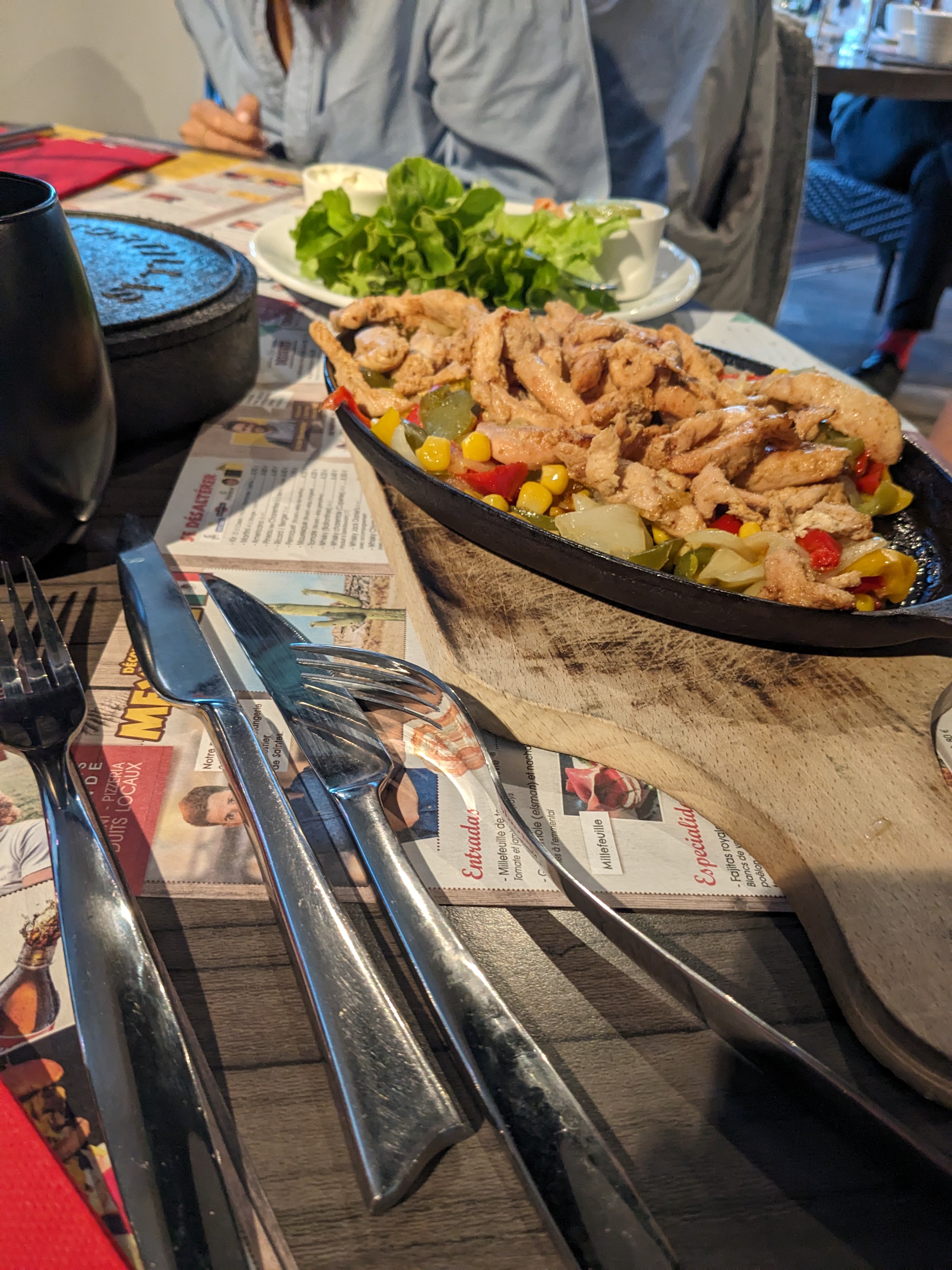 Cadre et service sympa, tartare et escalope franchement décevants, burger et fajitas bons