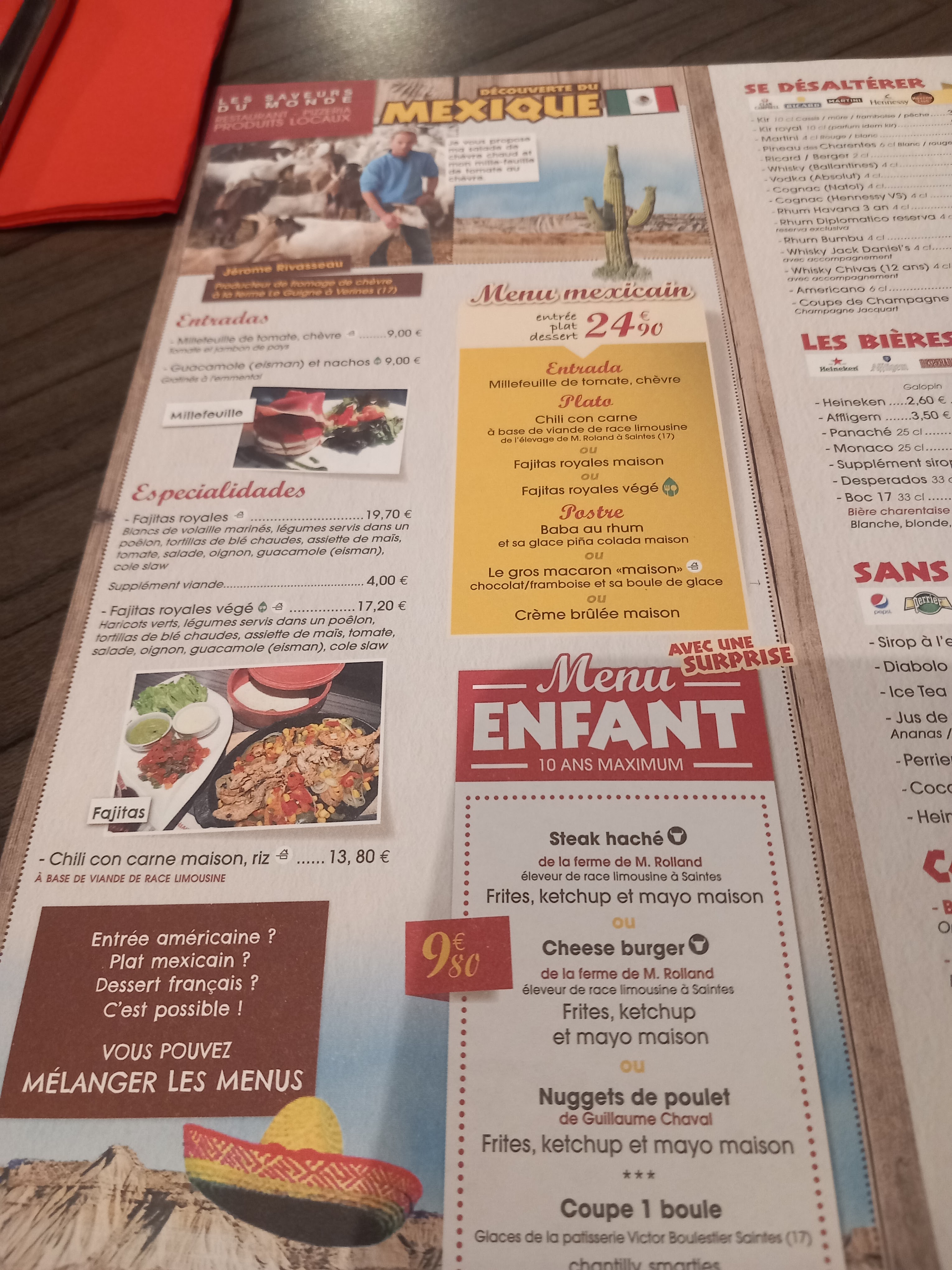 Repas au top, carte très variée avec spécialités Françaises, Mexicaines, Italiennes, Américaines tout le monde y trouve son compte avec beaucoup de produits locaux dans les plats.. Les plats sont très garnies. Rapport qualité prix correct.Service efficace et rapide 👍 Je recommande vivement
