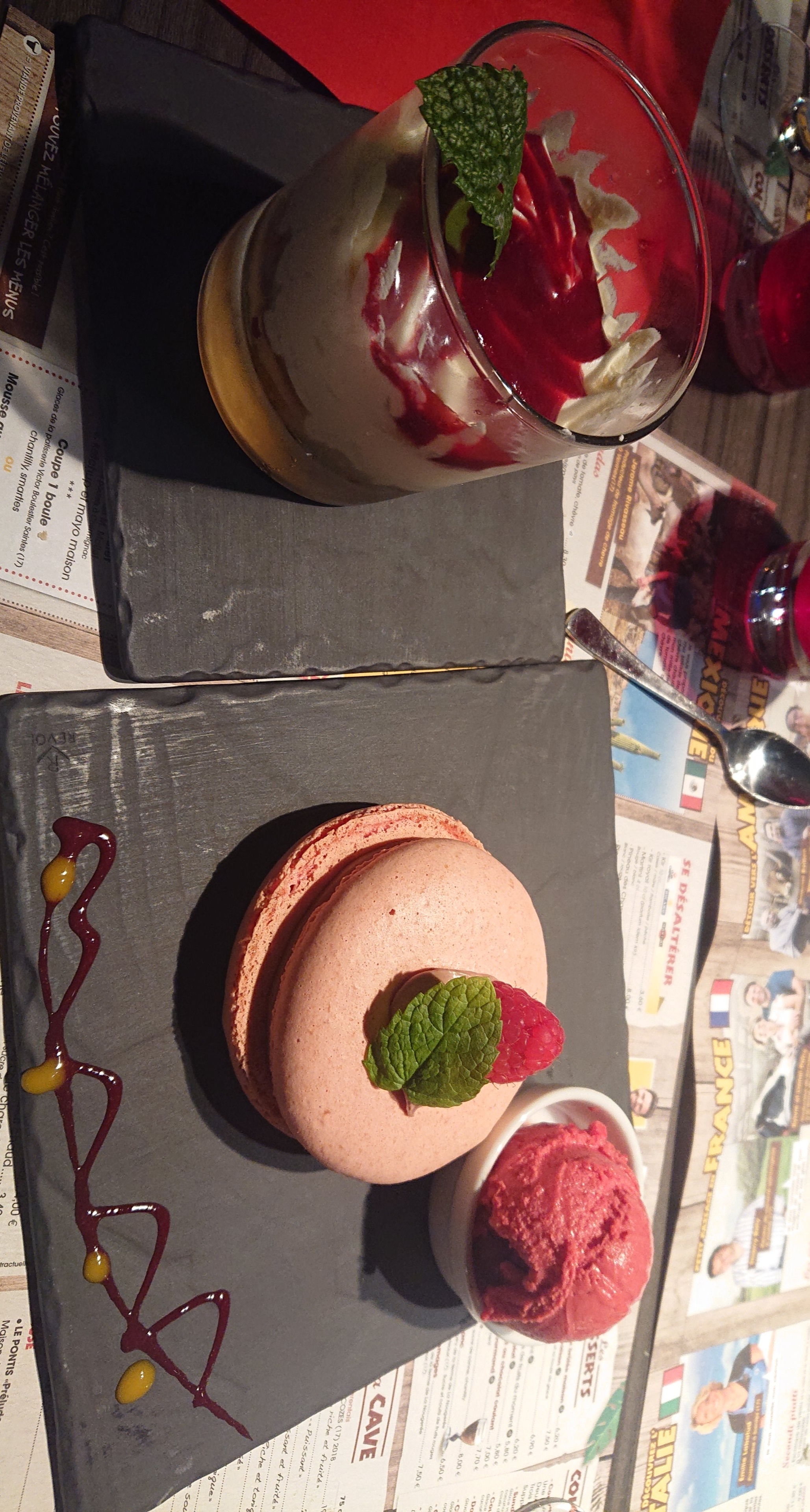 J'ai très bien mangé aux saveurs du monde, une super entrée : millefeuille de tomates chèvre et un gros macarons choco/framboise accompagné d'une boule de glace, en dessert. Acceuil et service par Stephanie, très bon acceuil, hôtesse souriante et très agréable. Je recommande vivement et y retournerais avec plaisir. ☺️
