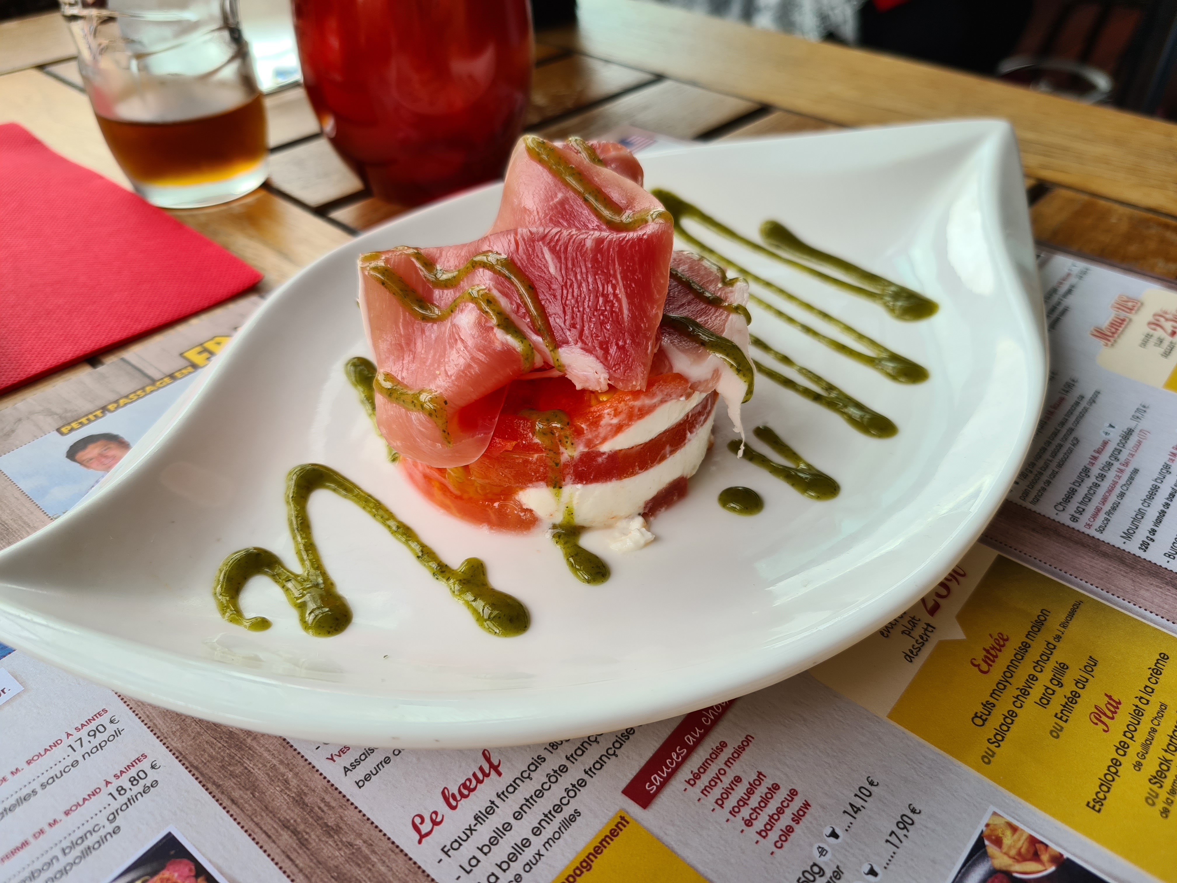 Bon pas le bon soir pour nous ... Les commentaires nous ont donnés envie pour cette adresse . Sauf que malheureusement grippe aviaire donc pas: Tartare, steak ni canards donc la moitié de la carte non disponible car produits locaux mais bon compliqué pour un restaurant où ces ingrédients sont dans 80% des plats .... En suite l ambiance pas au top entre le personnel en vers les clients très bien , mais bon voilà nous sommes dans le restaurant... Bref on va mettre sa sur le compte que c est l été et un soir un peu tardif (pour 20h45)