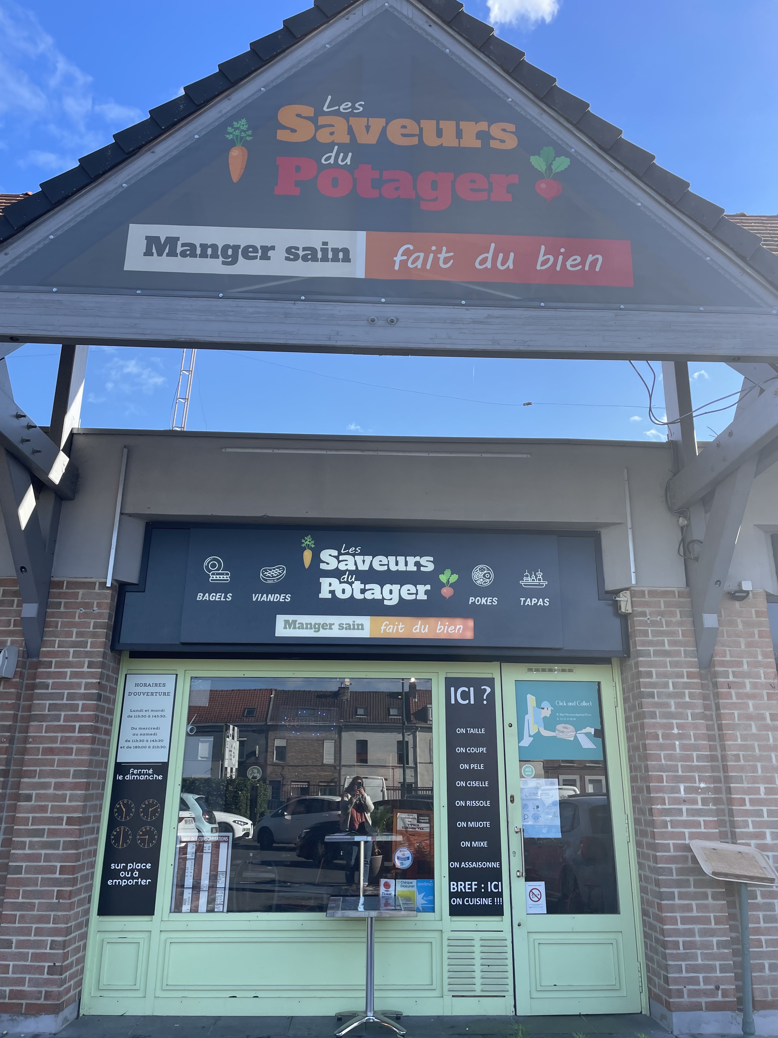 Nous avons découvert ce charmant petit endroit lors de l'inauguration du magasin de notre fils Camélia et Hortensia, puisque Les Saveurs du Potager est situé juste à côté dans la petite zone commerciale Le village de La Marque et qu'il avait participé à la réalisation du cocktail dinatoire de l'inauguration. Nous avons prolongé la soirée en en franchissant la porte et nous avons adoré y déguster leurs plats de toute fraicheur préparés par un restaurant qui porte très bien son nom car on retrouve toutes les saveurs du potager dans notre assiette avec un très bel équilibre entre les différents produits et des assaisonnements parfaits. Des produits de qualité car comme le dit leur slogan : ici on taille, on coupe, on pèle, on ciselle, on rissole, on mijote, on mixe, on assaisonne, bref, on cuisine ! Et cela se ressent dans l'assiette, du burger au poke bowl en passant par les délicieux bagels ou les soupes, chacun y trouvera un plat à son goût. Un très bon endroit pour manger sain tout en se faisant plaisir ! Le cadre est simple et accueillant, le repas est également possible en terrasse. Bref une adresse à retenir pour y manger mais aussi pour organiser toutes réceptions (anniversaire, cocktail dinatoire ...) Parking disponible sur place. Mention spéciale Covid19 : respect des gestes barrières, gel à disposition, pass sanitaire et le tout avec le sourire !