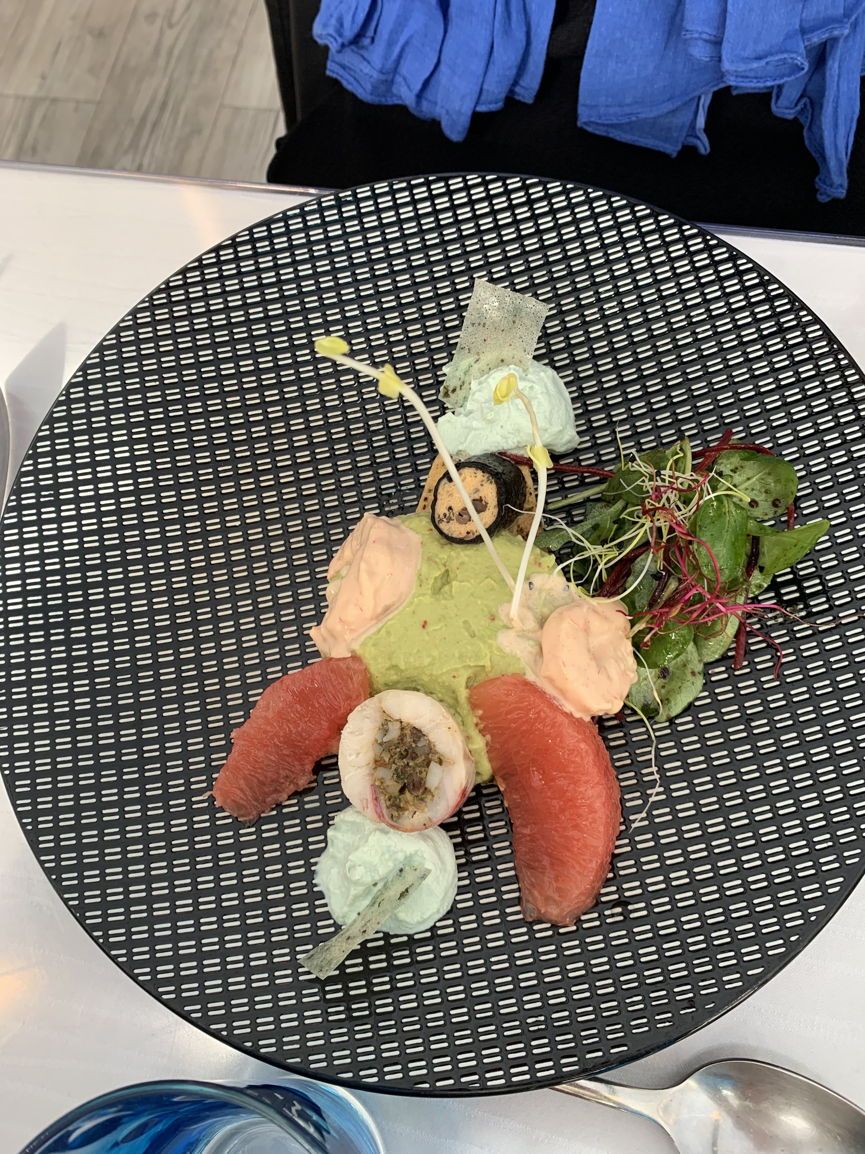 Bonne cuisine beaucoup de recherches de combinaisons de saveur, petit défaut le manque de lisibilité des plats présentés dans des coupes ou assiettes ou récipients creux qui ne favorisent ni la lecture ni la découpe, continuez, merci