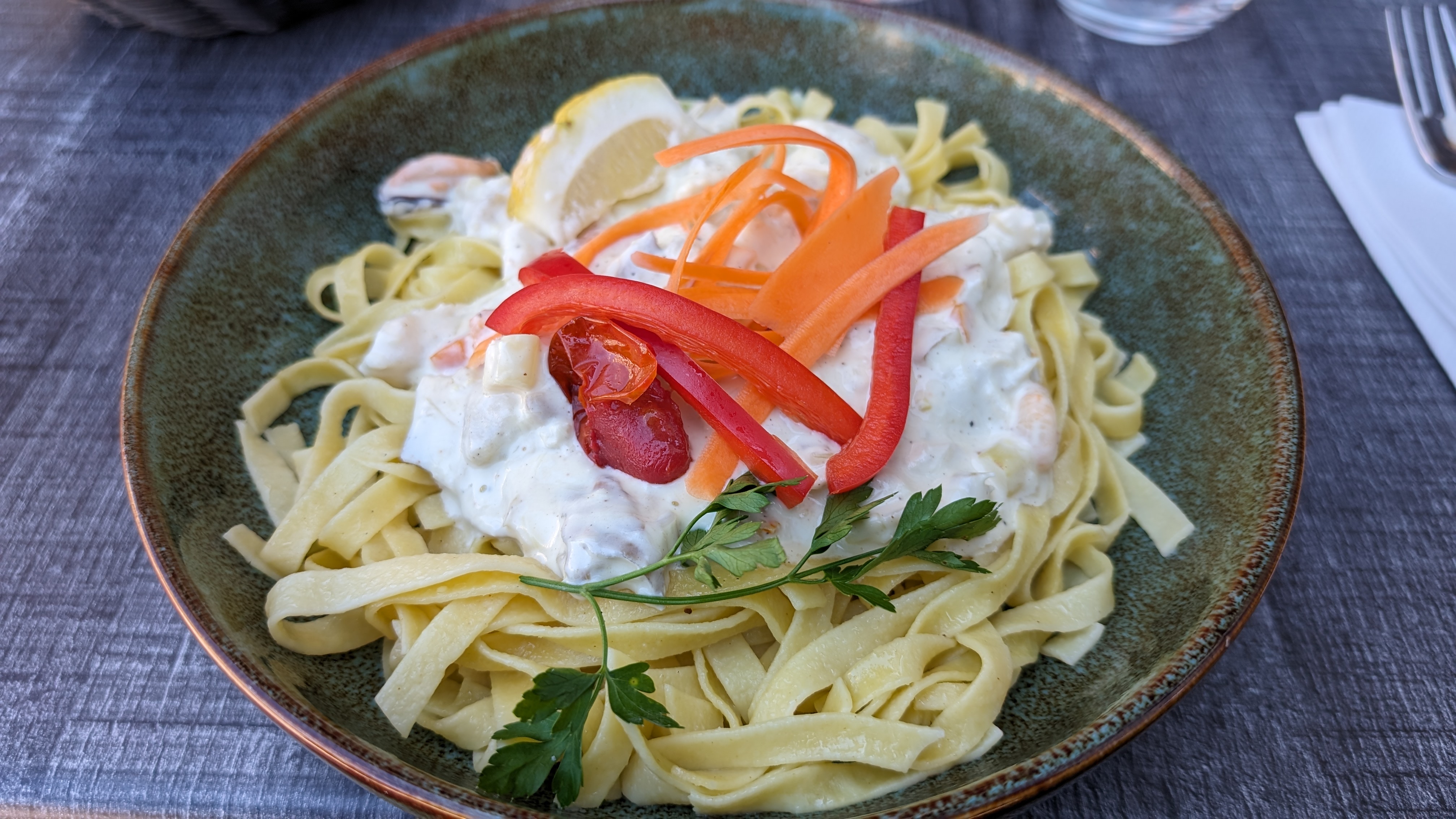 Cuisine très bonne service impeccable personnel très sympa attentif gérant professionnel je le recommande