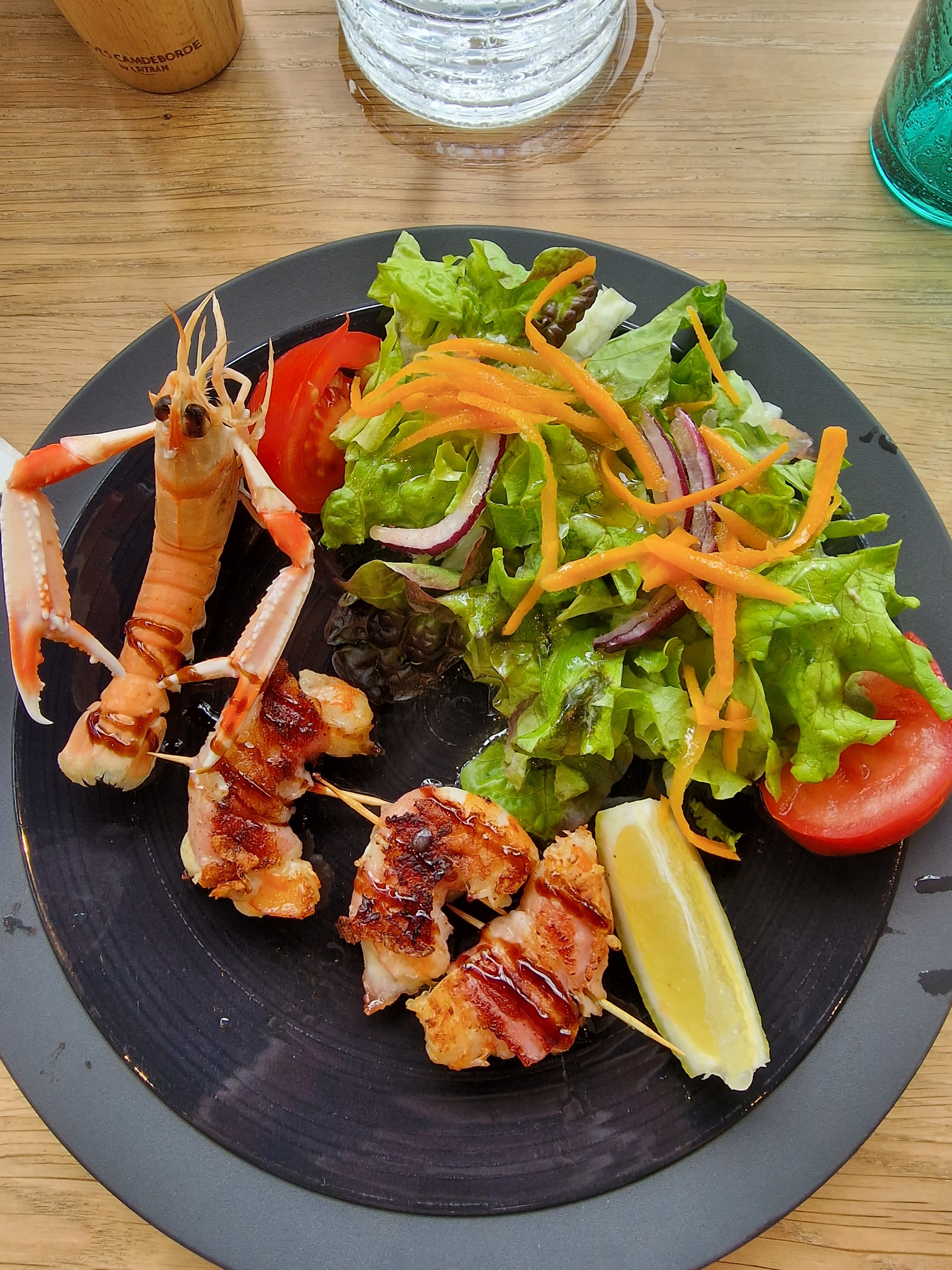Bon accueil et repas délicieux Poisson, salade Mazametaine, salade végétarienne et salade de chèvre. Miam miam