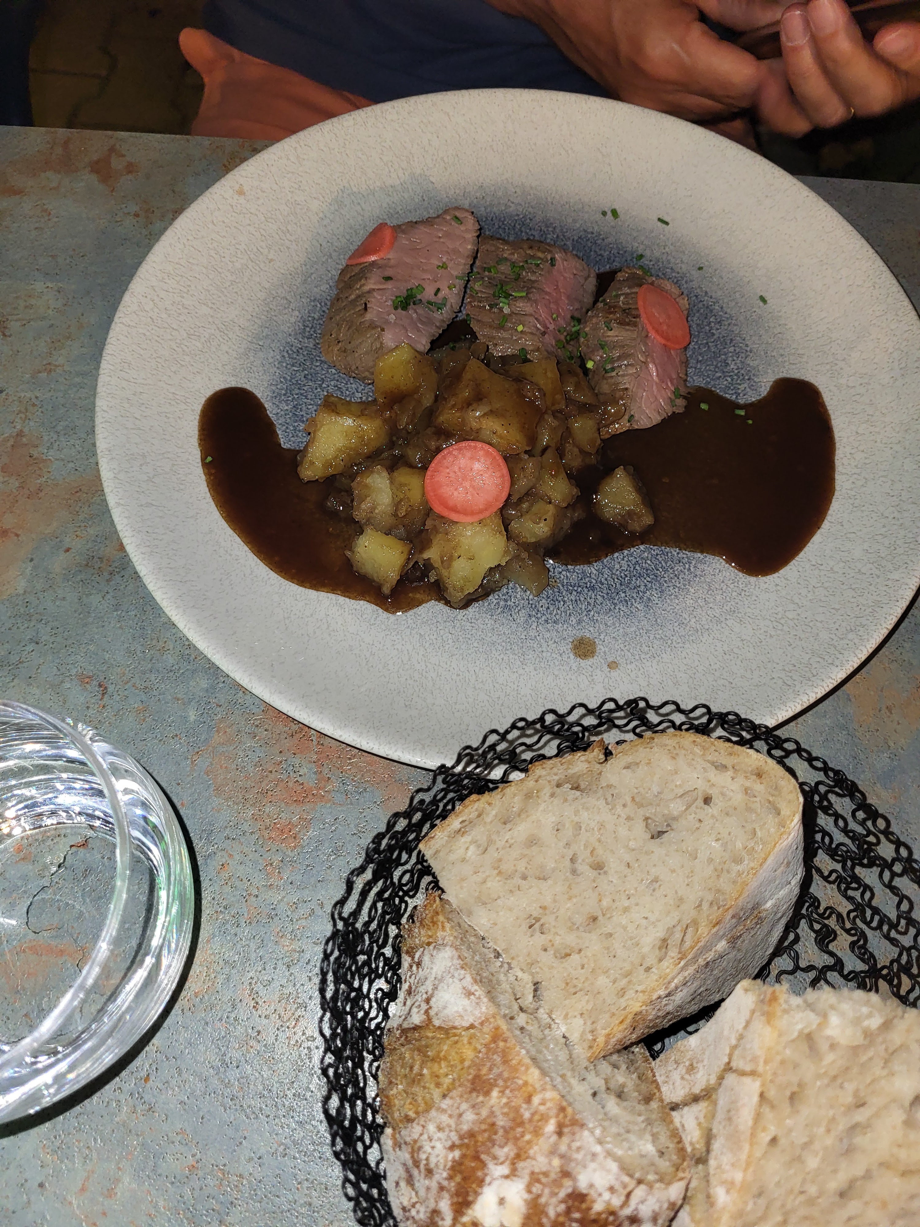 Très bon rapport qualité prix, des assiettes savoureuses, mon tBone de veau rosé était parfait, et l’espadon de madame très bien cuit ( fondant ). L’assiette des enfants est très bonne et le service parfait malgré le manque d’effectif ce soir. Je recommande vivement ( et la vue, magnifique !!! )