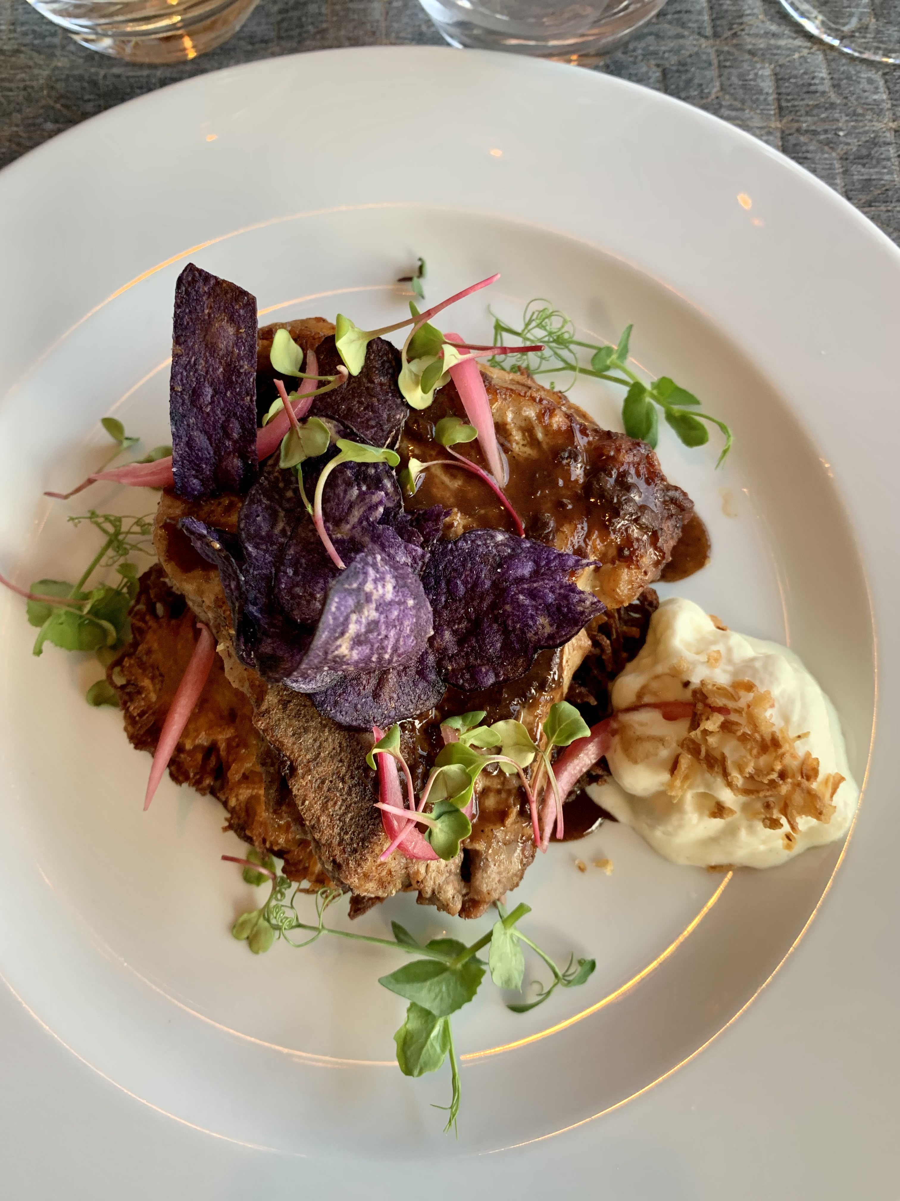 Plats délicieux et assiettes bien présentées. La vue sur la vallée était tout simplement incroyable. Le personnel était convenable mais pas très personnel, peut-être parce qu'il y avait beaucoup de monde. La réservation en ligne s'est bien déroulée et a ajouté de la valeur à notre expérience culinaire. Le menu était un excellent exemple d’options moins c’est plus (3 x 3 x 3).