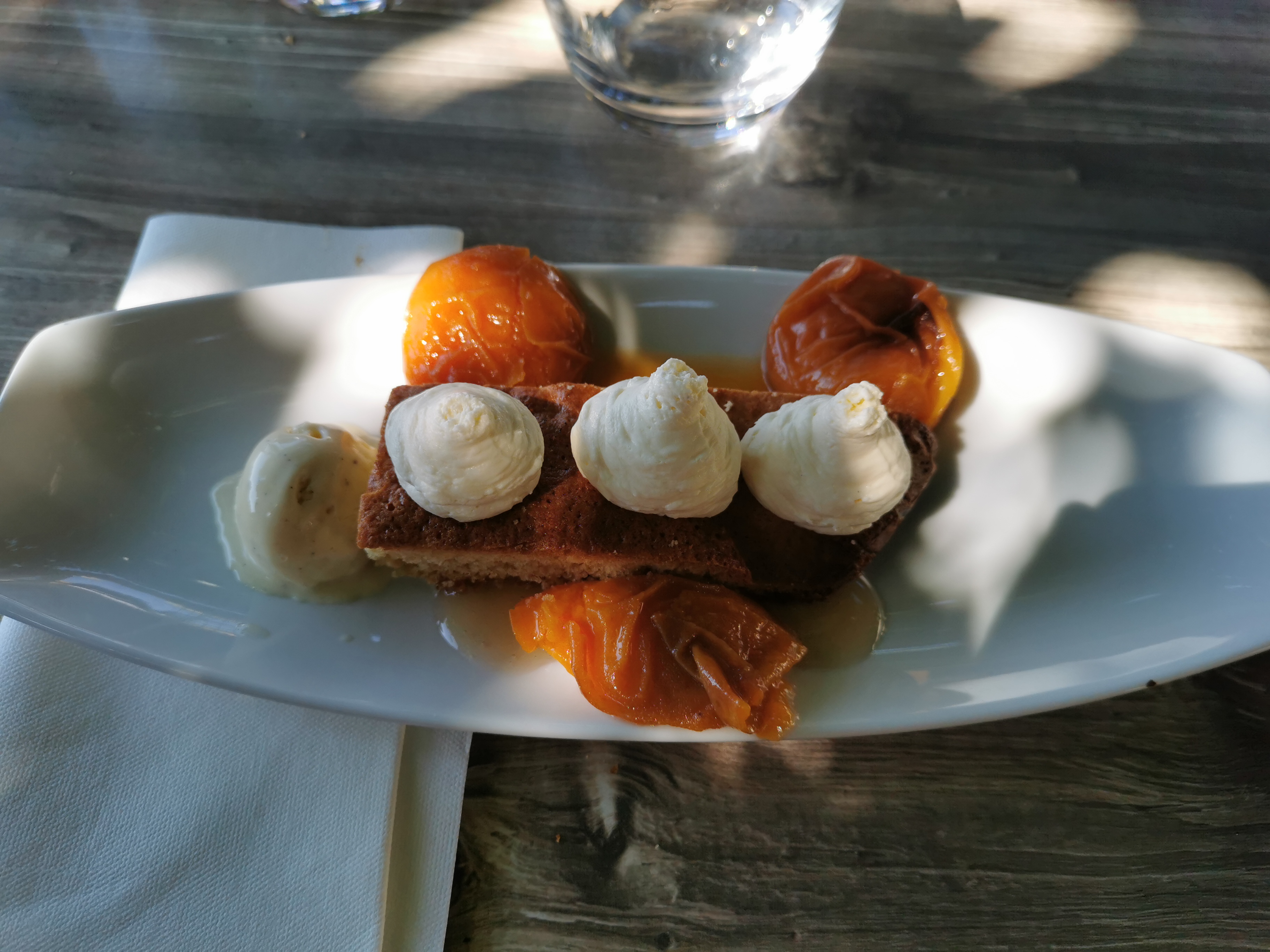 Service un peu long. La vue est incroyable. La nourriture est excellente et fraîche. Peut-être une petite suggestion pour la tarte aux abricots, est-il possible d'ajouter plus d'abricots ?