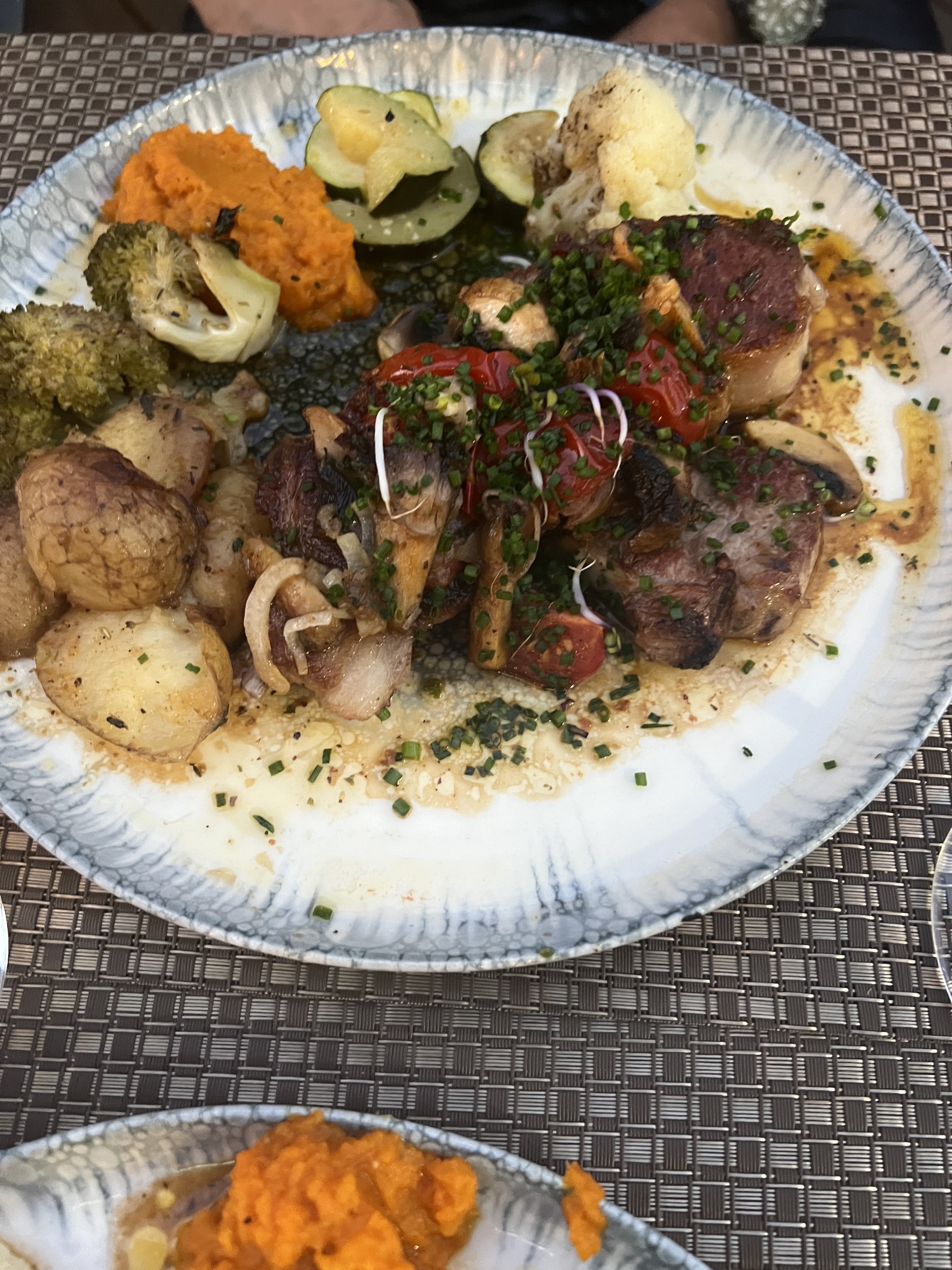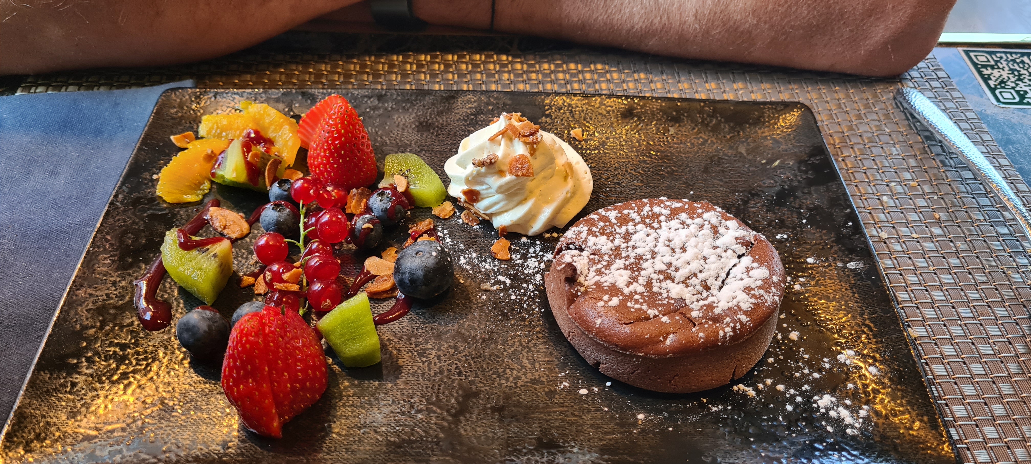 Meilleur mousse au chocolat de ma vie, mon petit fils qui n'aime pas les courgettes et les navets à adoré. Les côtelettes étaient très bonnes et le pluma façon thaï était très tendre. Glaces très succulentes et forêt noir très gourmandes. Ce restaurant est très bien décoré et très copieux. Il en vaut la peine.