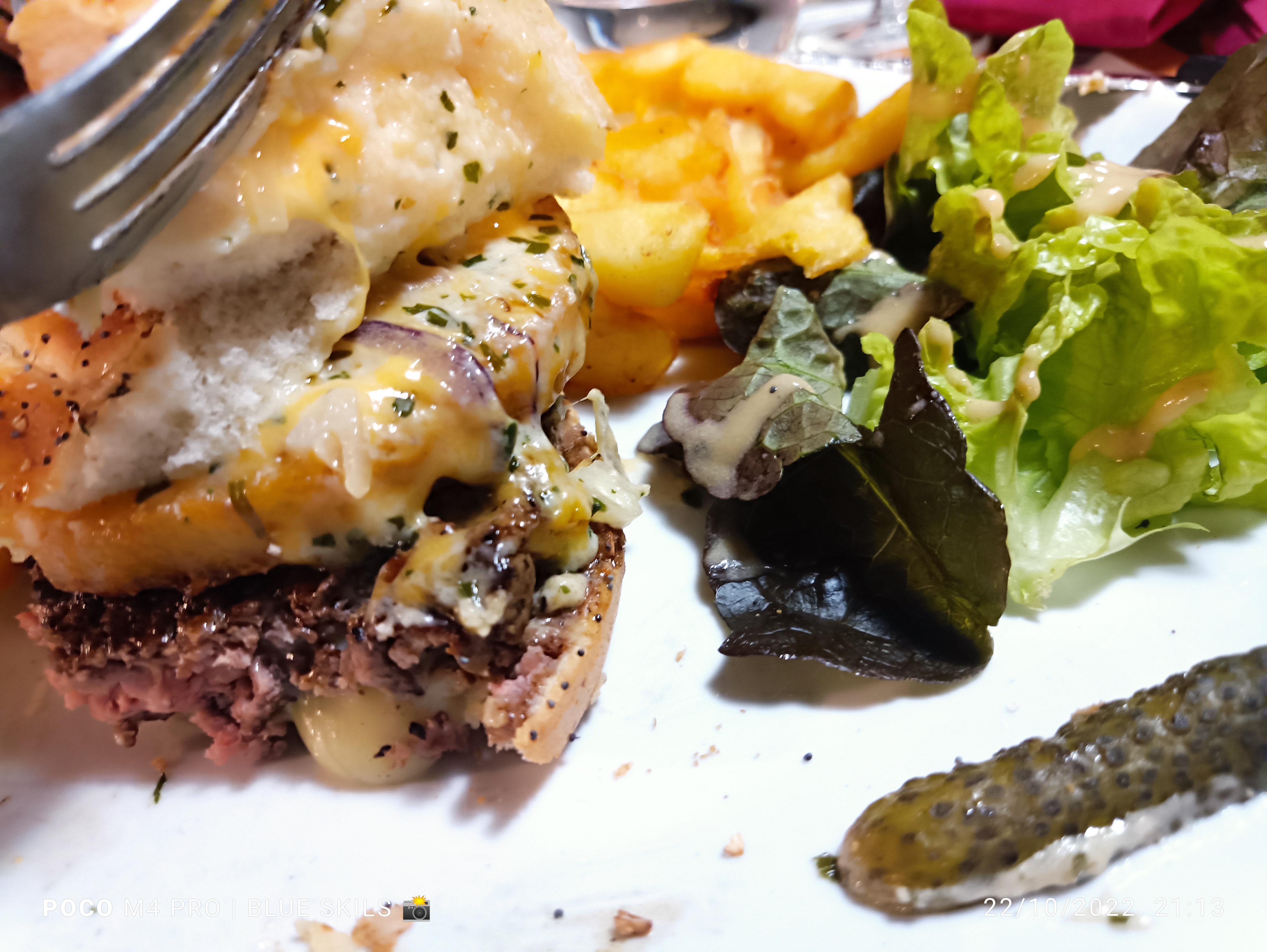 A part une légère surcuisson pour mon hamburger demander à point, rien à redire. Celui de mon mari demander bleu impeccable. Il regrette juste qu il ne soit pas assez fourni. Service impeccable