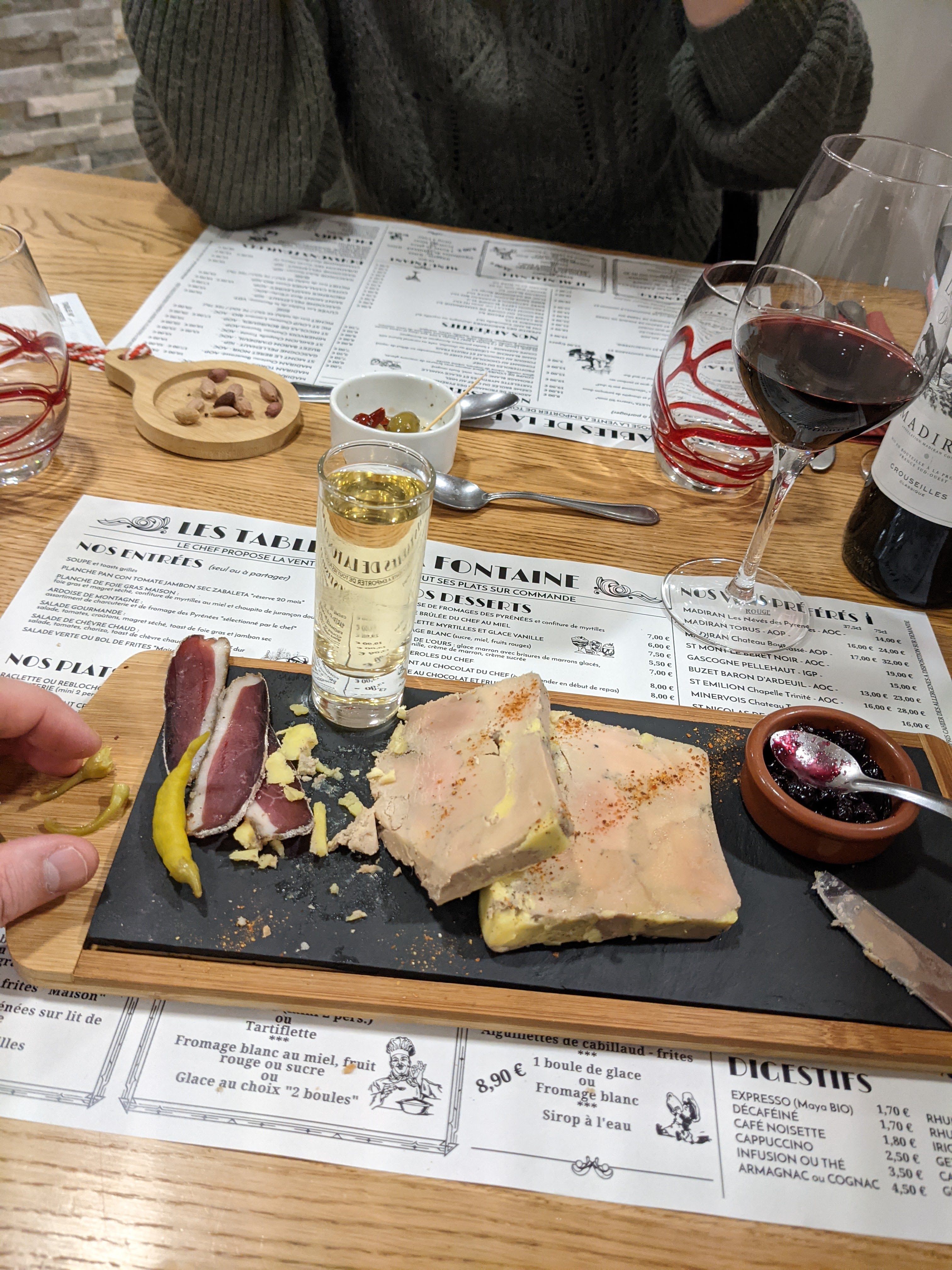 Bon restaurant, il faut réserver car il est vite complet. Pas mal de choix, la bouffe est bonne et on en a pour son argent même si les prix sont un peu élevés. Par exemple pour l'assiette de foie gras à 19.90, il y a deux belles tranches de foie gras mi cuit, très bon avec quelques tranches de magret séché, 2/3 piquillos verts vinaigrés et un shooter de Jurançon, ça va! Nous reviendrons goûter d'autres plats si nous passons dans le coin.