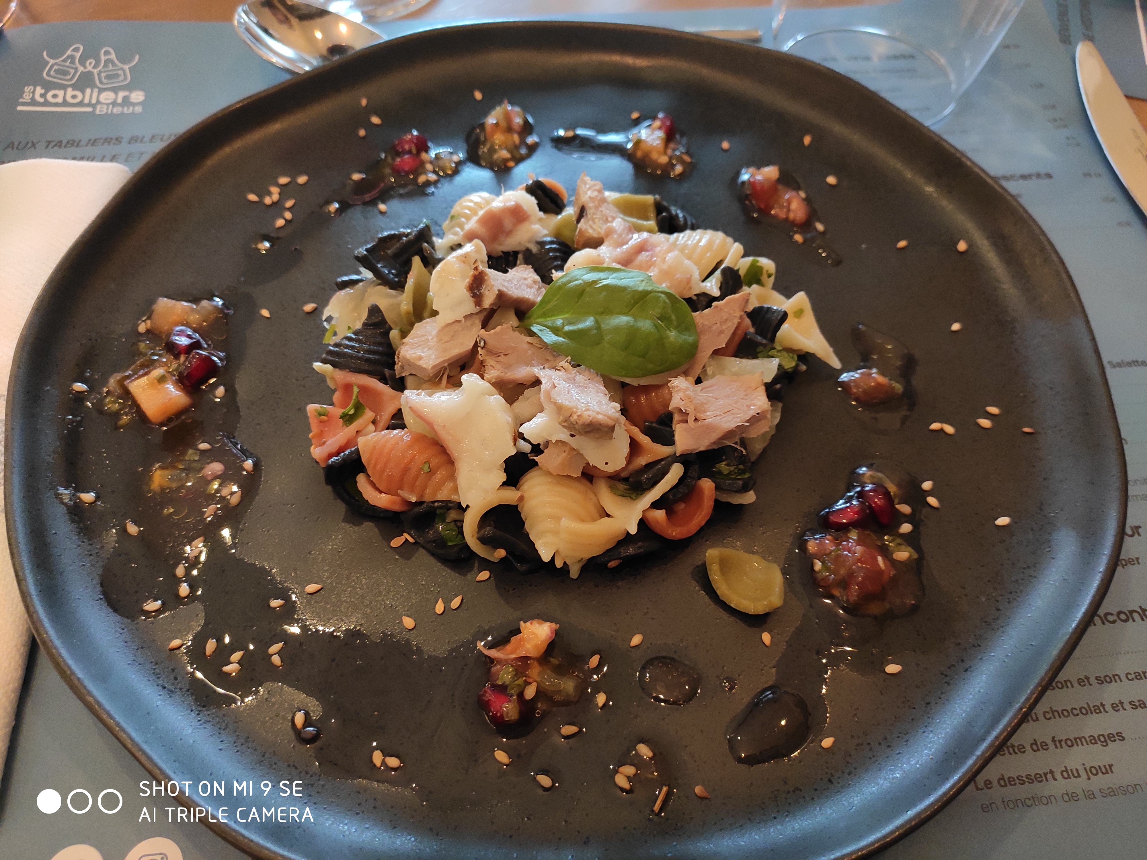 Excellent déjeuner ce midi Aux Tabliers Bleus. Une cuisine savoureuse, des assiettes joliment présentées et un service impeccable ! Un grand bravo et merci à toute l'équipe.
