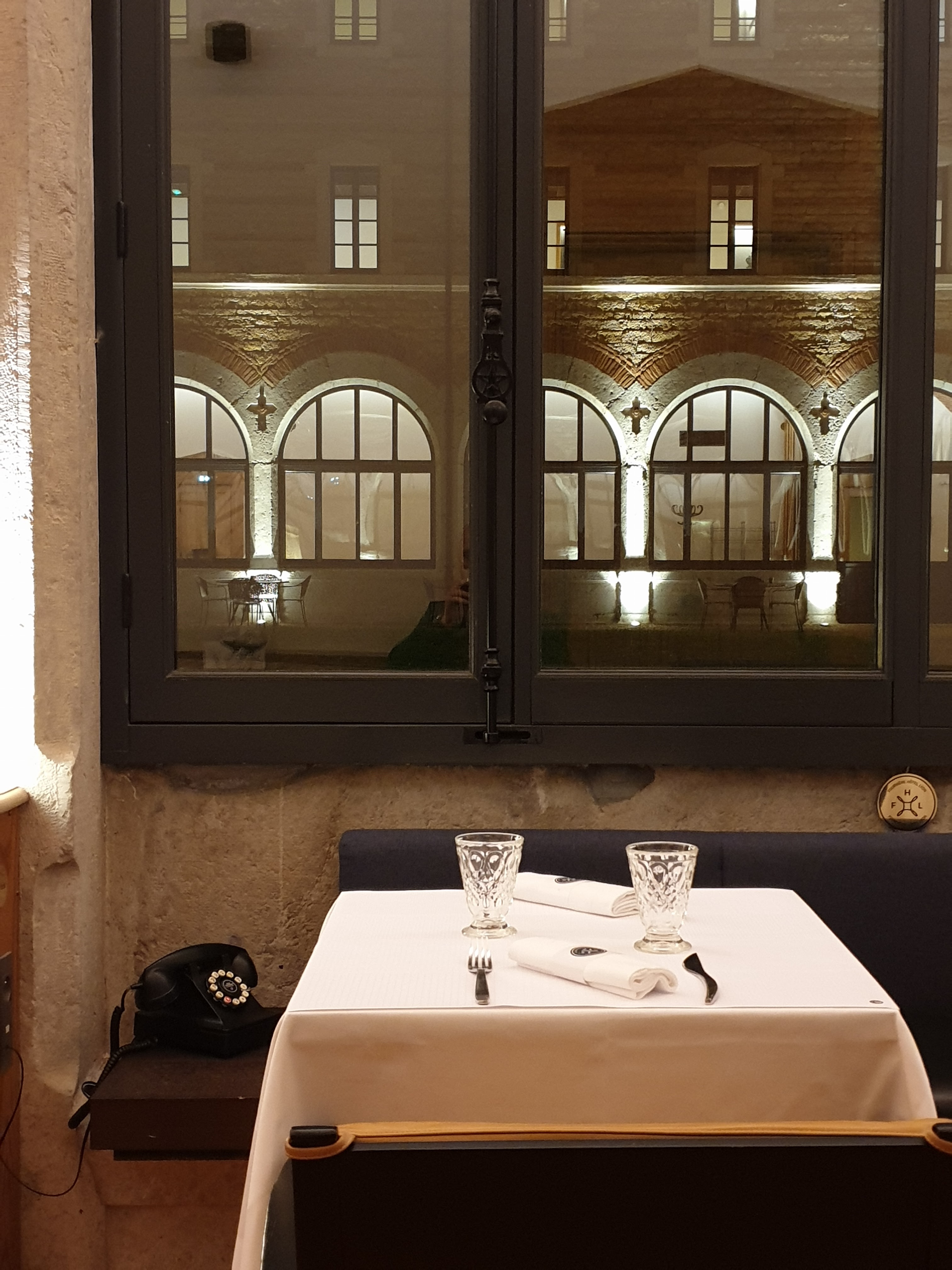 Cadre magnifique et intimiste dans cet ancien couvent rénové avec goût et qualité. Entrée par le hall de l’hôtel impressionnant type église. Vue sur court intérieure superbe. Bon service et cuisine raffinée. Moment romantique partagé. Je n’ai pas trouvé le lien avec Les téléphones… pourquoi pas plus « les nones »?! ;))