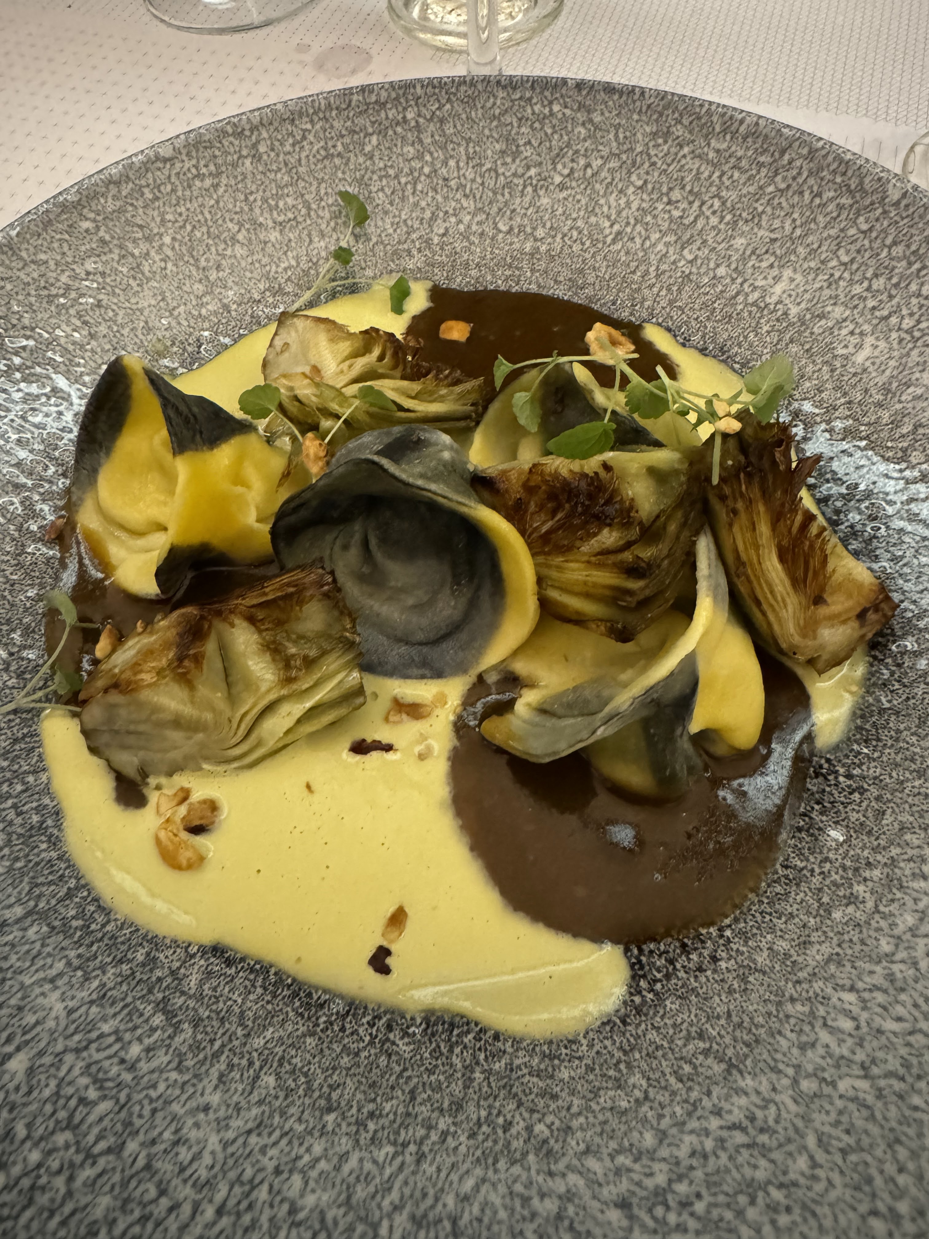 Outre le cadre, qui est superbe et original à la fois, nous avons passé un très bon moment. L’architecture de l’hôtel fait que la salle n’est pas bruyante. La petite musique de fond et les lumières de l’hôtel ont ajouté une ambiance très cosy. En ce qui concerne la nourriture, nous avons choisi les tortellini, certes par défaut car nous ne mangeons pas de viande, mais c’était excellent. Les gros mangeurs pourront y ajouter une entrée mais nous en avons eu pour notre faim. Surtout avec les desserts. Mention spéciale pour le mocktail « sous l’ombrelle » avec du thym et romarin qui est vraiment excellent. Et un grand merci à Amin pour son service et ses attentions.