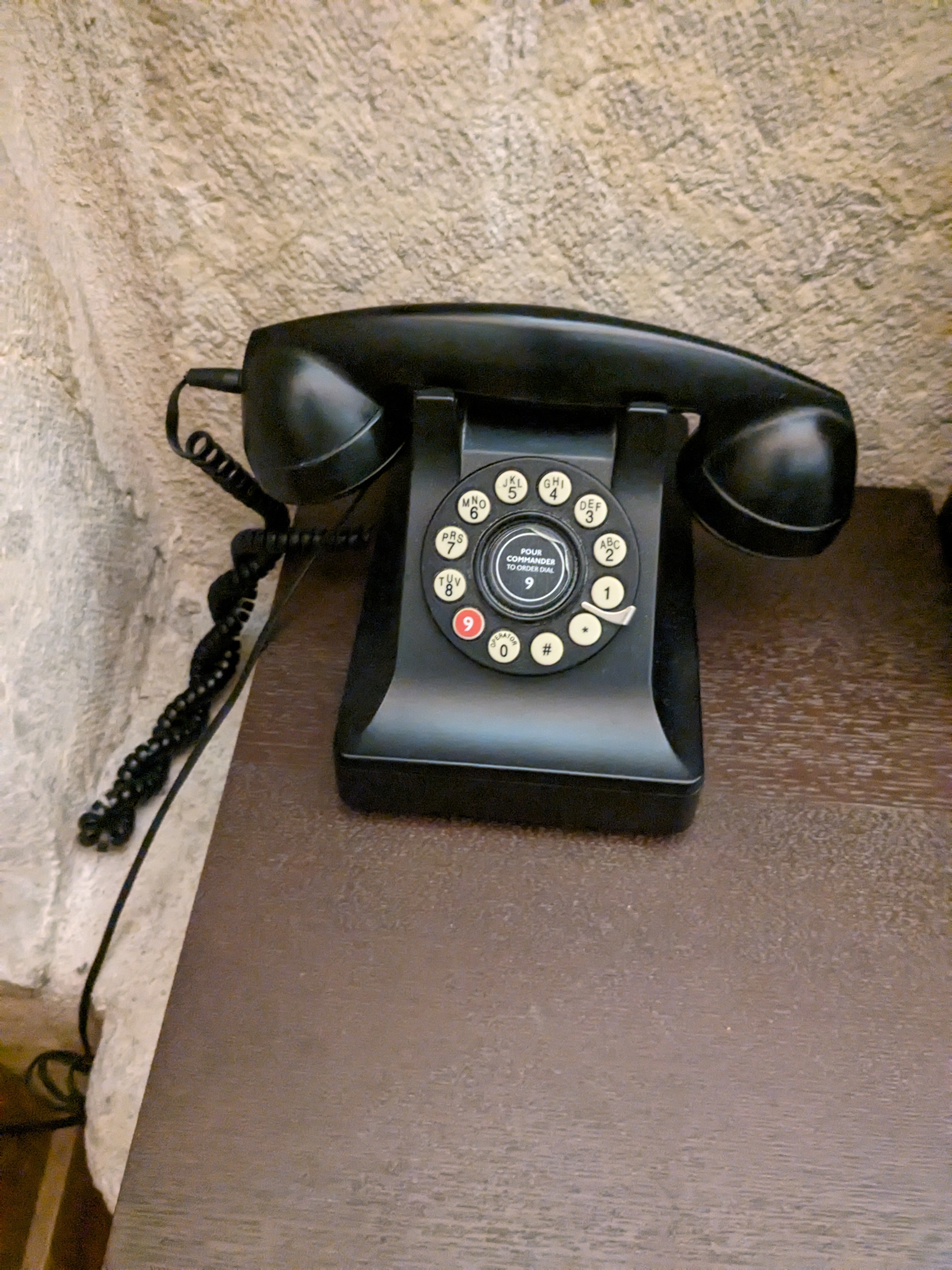 Un repas très agréable, un lieu charmant et surprenant. Une déception quant au fait que nous n'utilisons finalement pas les telephones vintages (bien présent)pour passer notre commande. Comme cela est indiqué sur certaines page Web. Toilettes sales. Une réception d'hôtel exceptionnelle