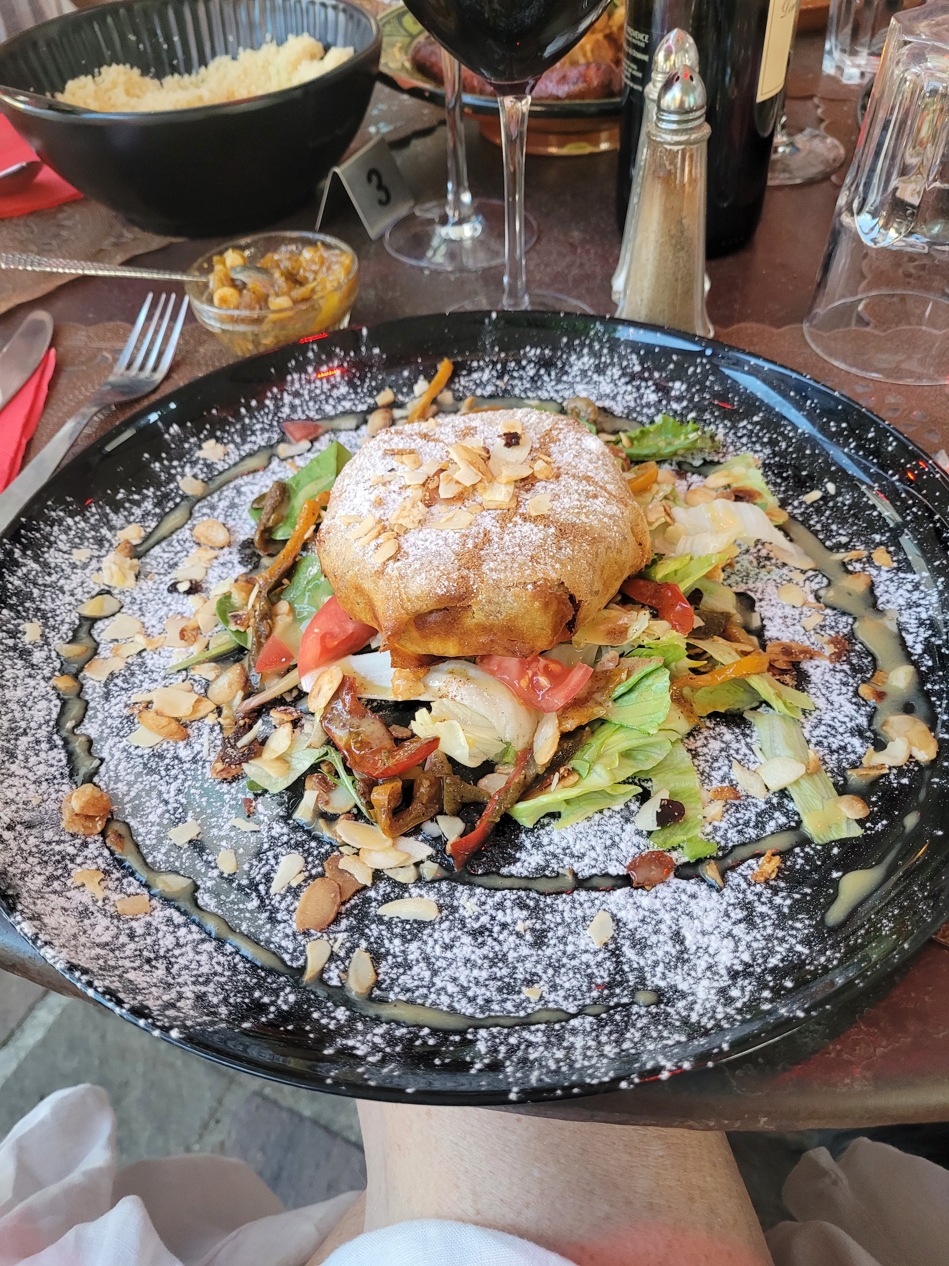 On s'attend a manger provençale et on se retrouve transporter au Maroc avec des plats délicieux de l'entrée au dessert. Quelques manques qui s'explique par la récente ouverture du restaurant mais qui se fait pardonner par la qualité de la cuisine !