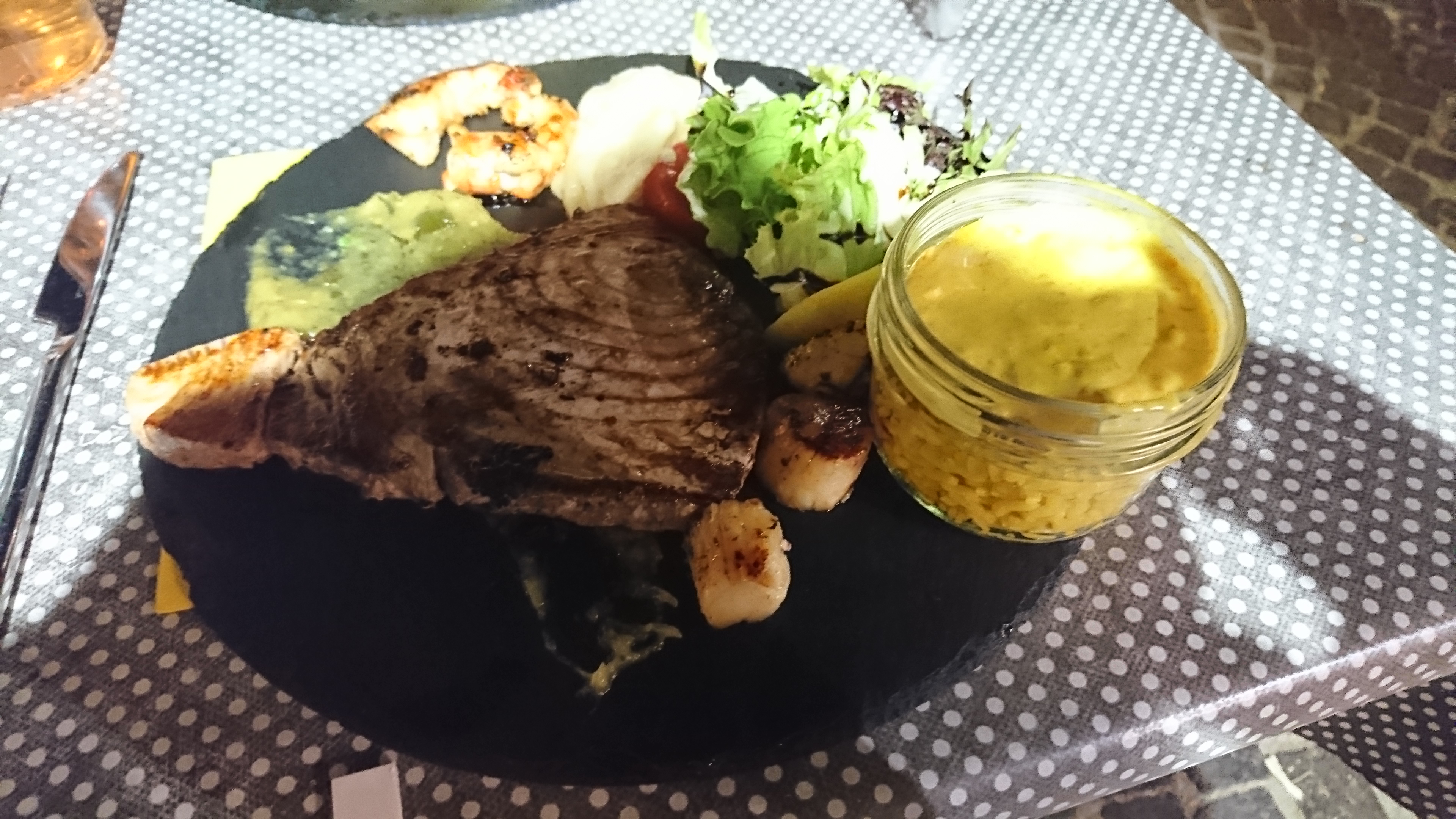 Excellent rapport qualité prix .. là, cassolette de fruits de mer et steak de thon plancha