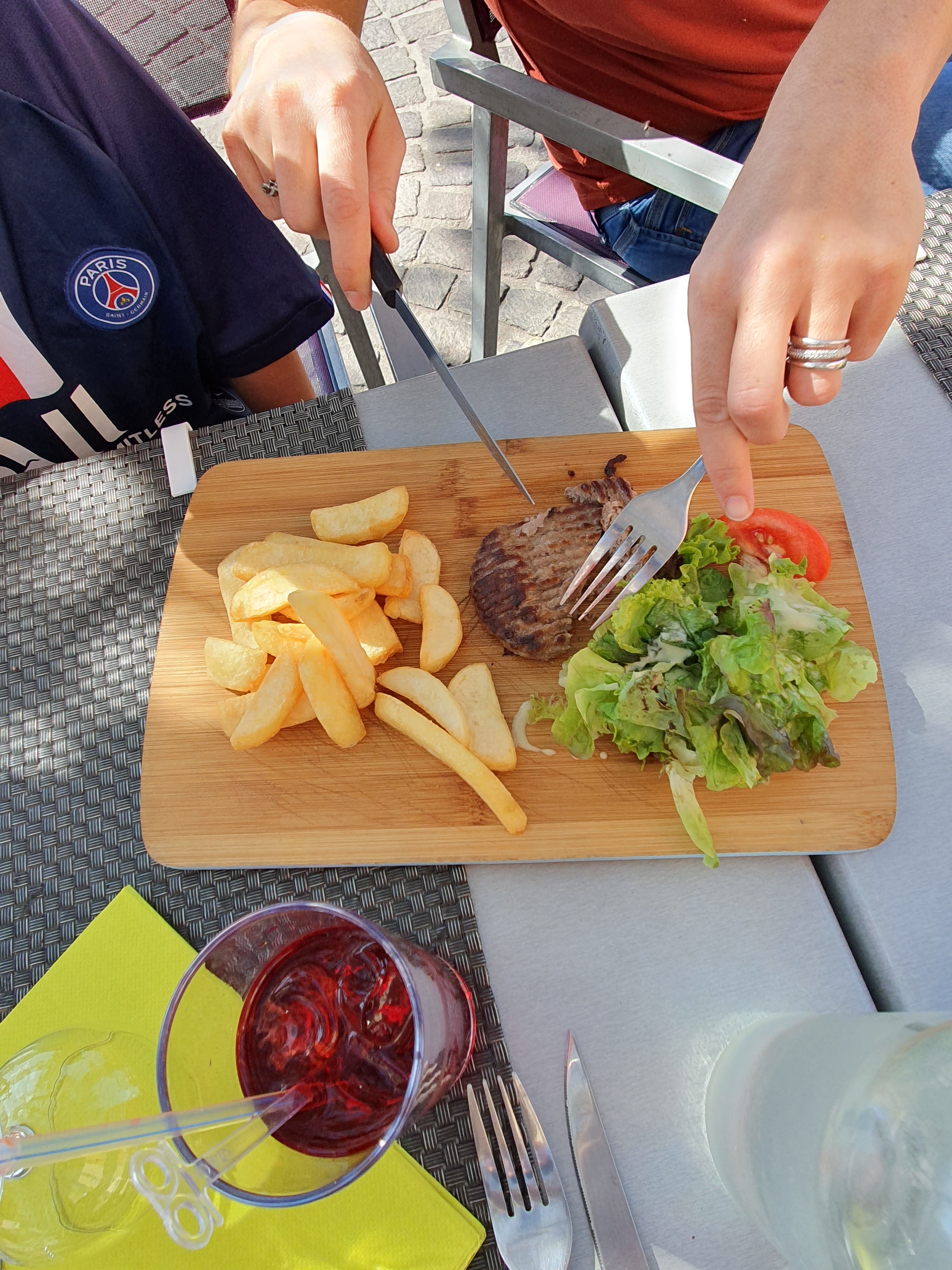 Première fois dans ce restaurant, et ce ne sera pas la dernière. Très bien accueilli, service rapide, voir même pour certain un peu trop. Les serveurs et serveuses sont agréable et prends soin des clients surtout avec la période très chaude avec toujours de l'eau fraîche même si notre bouteille n'est pas fini. La cuisine est très bonne, seul petit bémol, pas assez de frites maison, oui car des vrais frites maison. Nous y retournerons aux prochaines vacances. Je recommande!