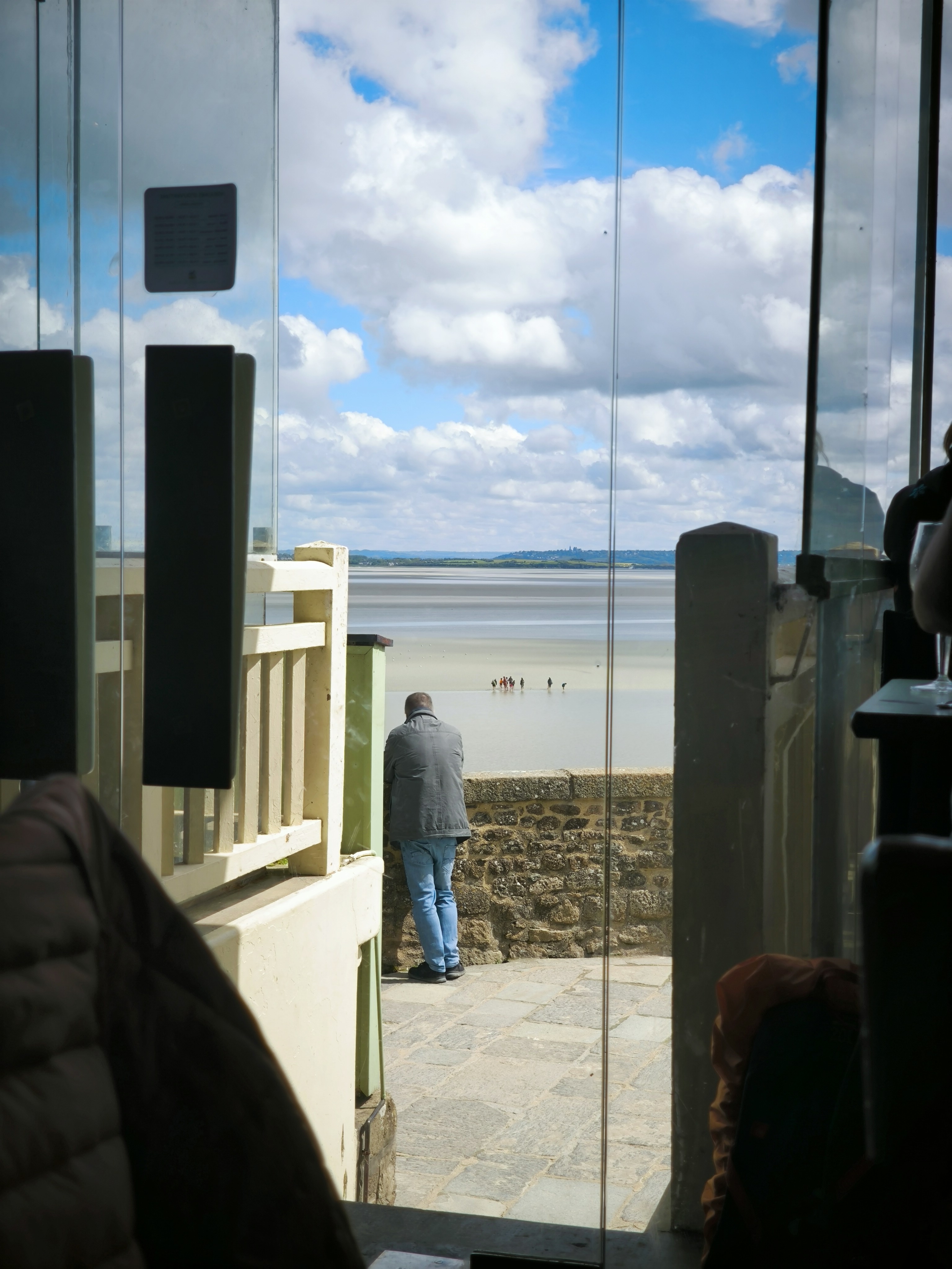 Ma femme et moi recherchions un endroit pour manger sur le Mont et cet endroit semblait avoir une vue incroyable sur la zone de marée. Comme nous étions l'une des premières personnes après leur ouverture pour le dîner, nous avons eu le siège près de la fenêtre. La première chose que j'ai remarquée, ce sont les fenêtres sales. Nous décidons quand même de commander. Plus je passais de temps assis à regarder autour de moi, plus je remarquais de mauvaises choses. Des toiles d'araignées au plafond, de vieilles couverts coincés dans le rebord de la fenêtre, des moustiques morts étalés sur les fenêtres. Il y avait beaucoup de mouches et de moustiques qui volaient partout, et finalement l'un des moustiques est tombé dans mes moules. J'ai dû arrêter de manger, mais à ce moment-là, je n'avais plus d'appétit. La nourriture n'était pas terrible, mais elle n'avait rien de spécial non plus. Le service était correct. La seule chose que cet endroit a à offrir, c'est la vue.