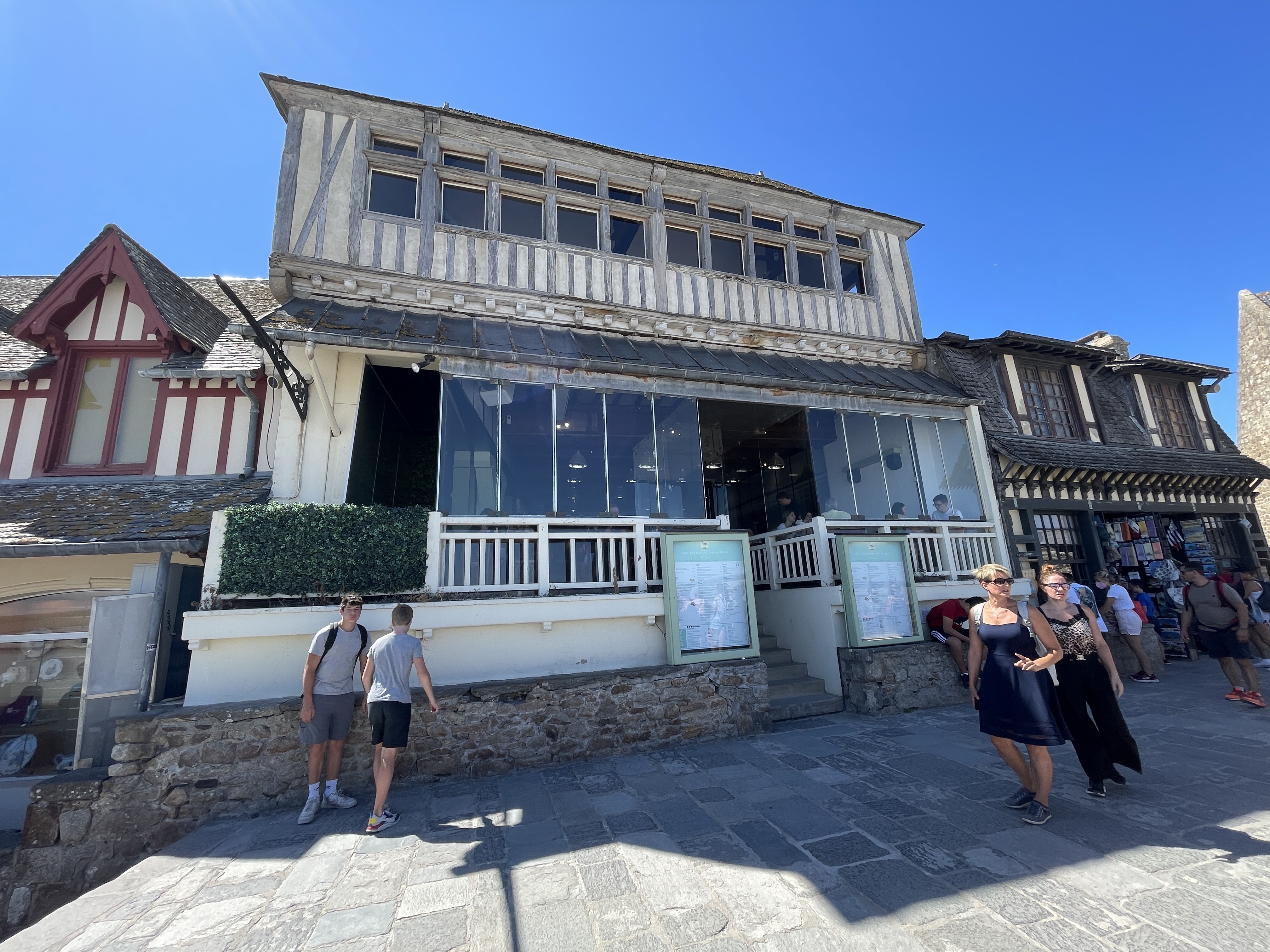 Cet endroit mérite une note plus élevée ! Je suis venu ici deux fois, deux ans entre les deux, et j'ai vécu une expérience formidable à chaque fois. Les prix des menus sont assez standards pour la France, mais économiques par rapport aux restaurants trop chers des environs. La nourriture est de bonne qualité et les portions sont bonnes, le service est excellent et la vue sur la baie est magnifique. C'est le seul restaurant que je recommanderais au Mont Saint Michel !