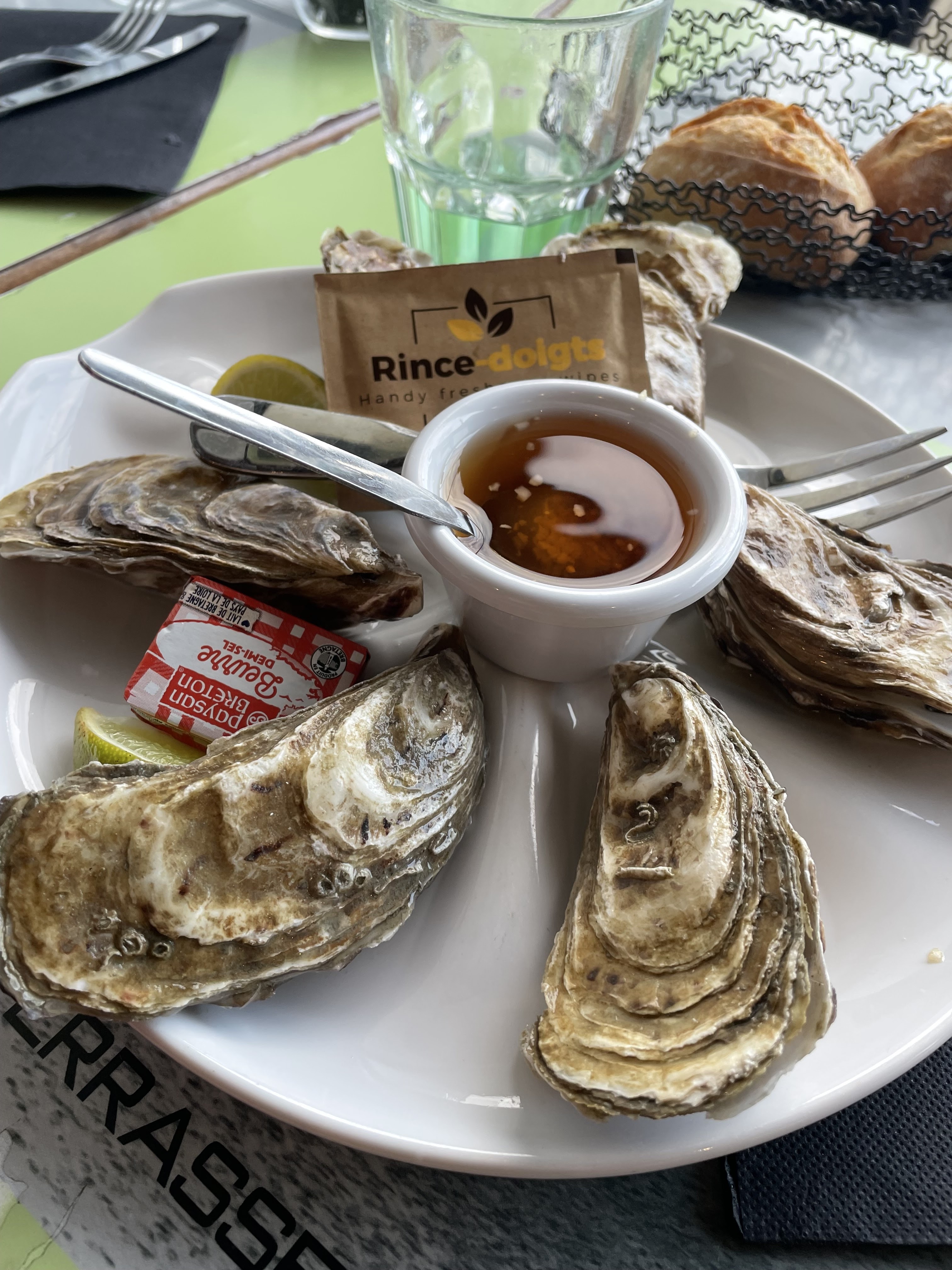 Nous avons bien mangé avec une vue magnifique sur la baie. Seul petit bémol, augmentez la taille de vos verres et la dose de sirop pour un diabolo 😂😂 des adultes en boivent aussi!!!! Le menu marin était très bien et les moules de Cancal excellentes. Le service quand à lui était très très bien avec une pensée pour notre chienne avec la gamelle d’eau. On recommande