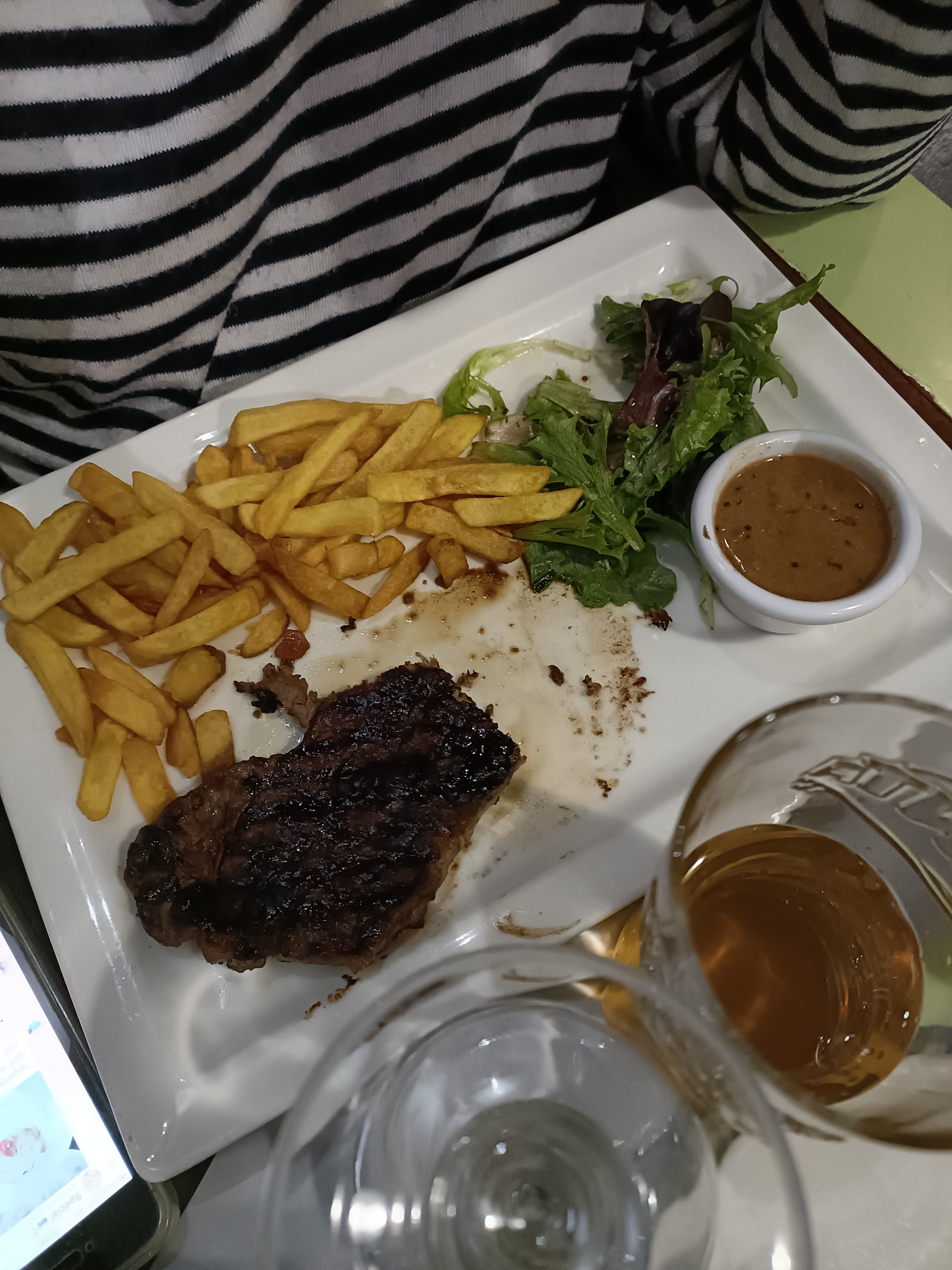 Les faux filets ne sont pas très tendres. Une assiette peut remplie. Certains éléments de la vaisselle ne sont pas propres. Cependant une équipe très dynamique et sympathique avec un cadre très agréable. Le rapport qualité / prix n’est pas au rendez-vous.