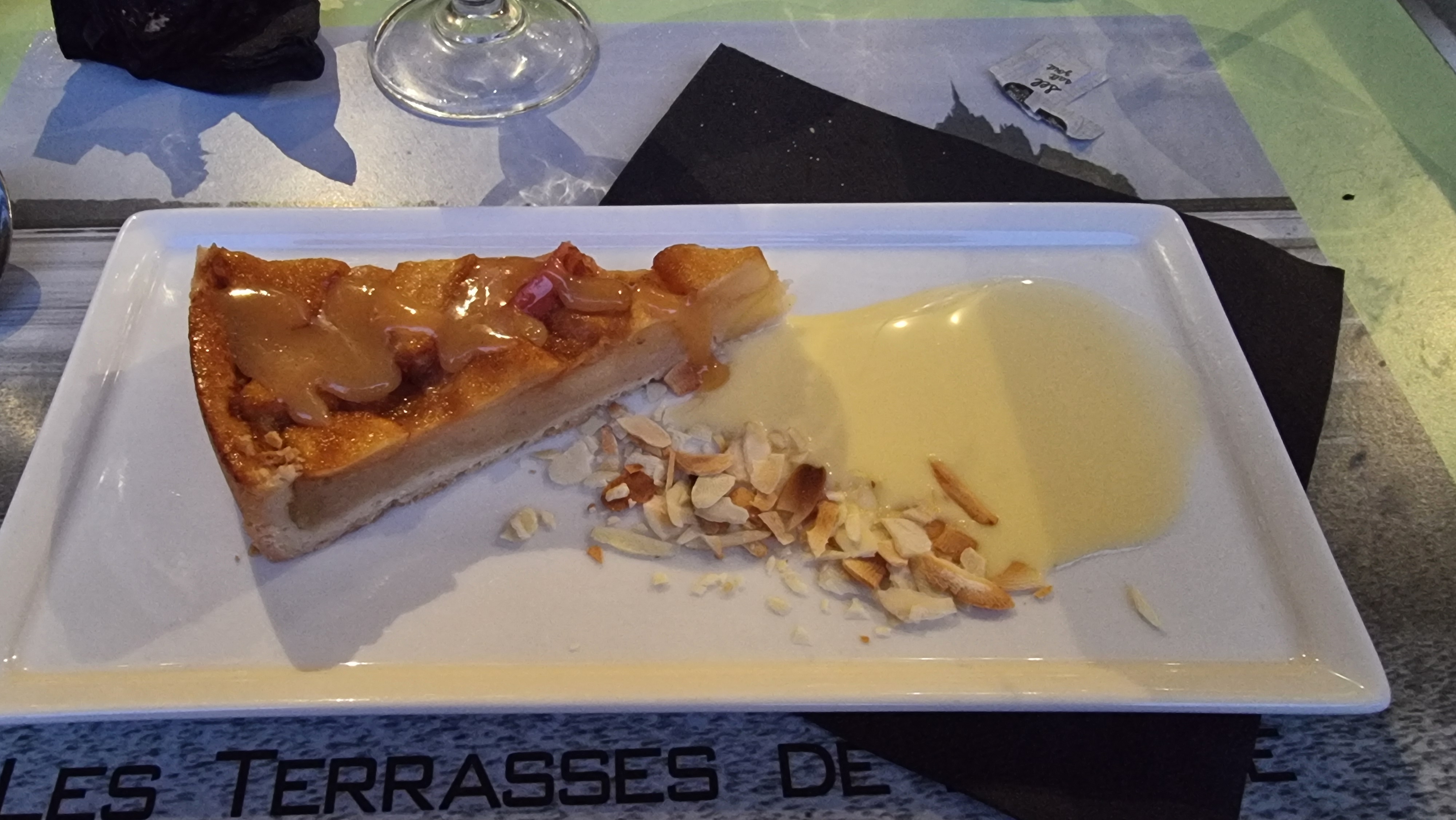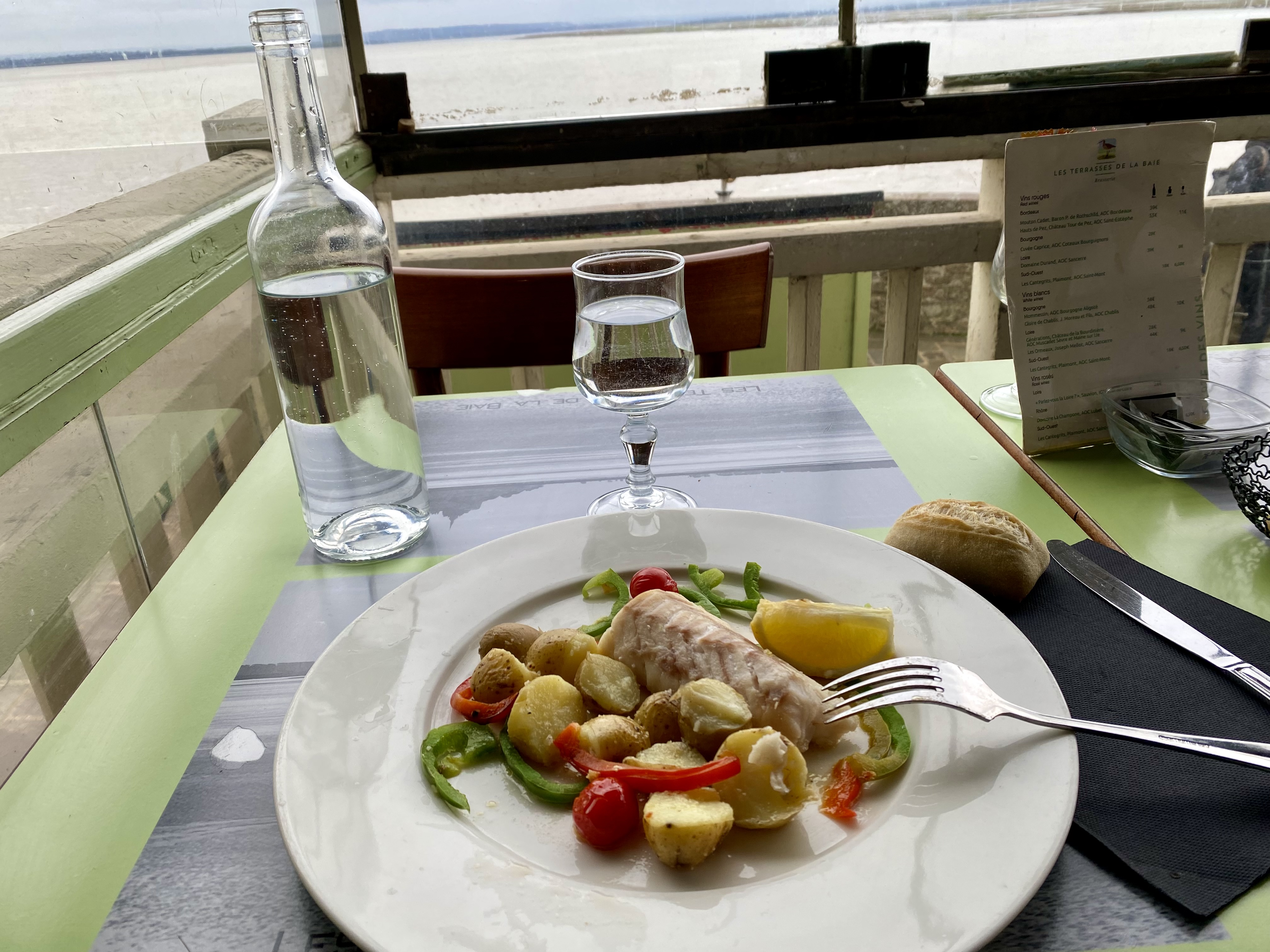 Extra. Vue imprenable près de la baie Notre menu n'apparaît pas alors que c'était vraiment génial : Omelette soufflée au lard Tiramisu Crêpe complète Tarte aux pommes normande.