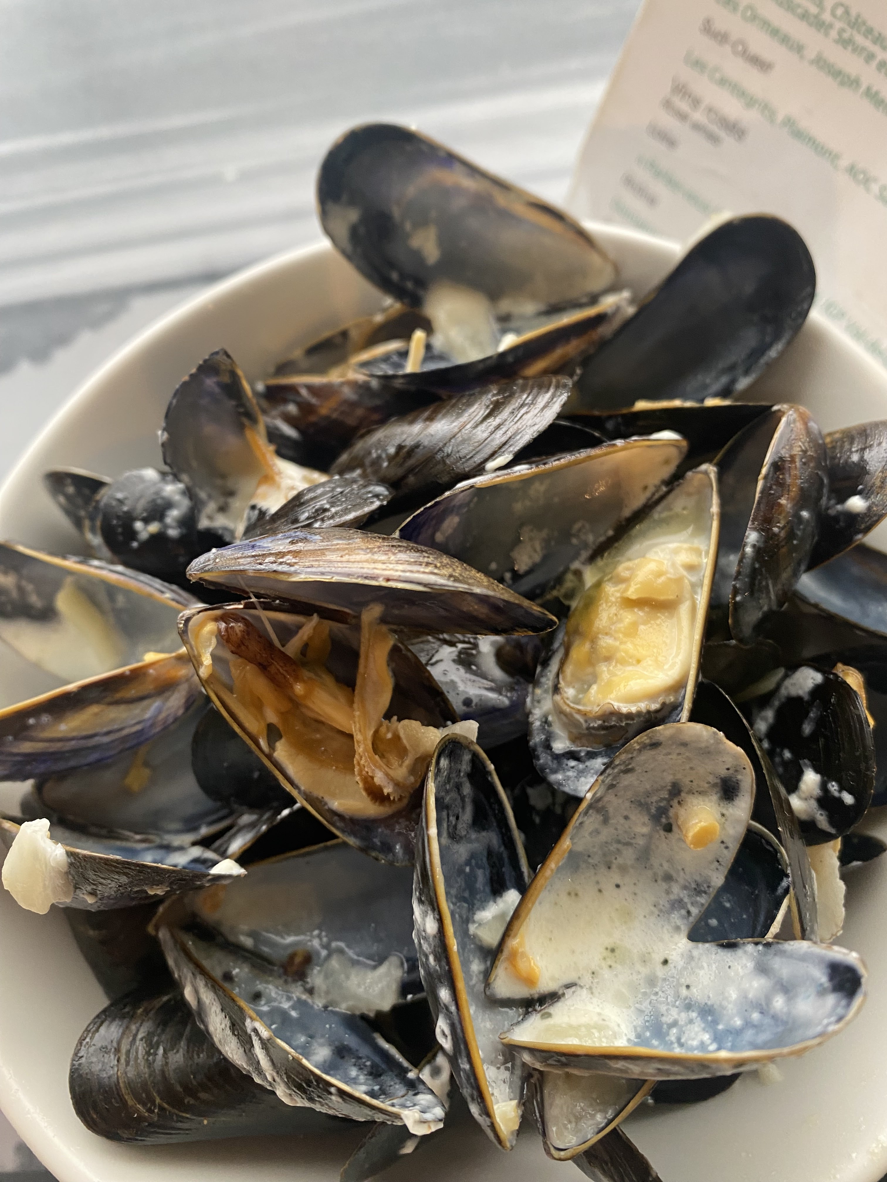 Si vous voulez manger des moules, abandonnez l'idée ,beaucoup trop petites ,et quand je dis petites ,c'est vraiment petites....!!!! Pour ce qui est du café gourmand, j'ai appelé la responsable qui est consciente du problème et donnée l'information aux cuisines , ce n'est pas un soucis pour eux. Il me semble que ce café gourmand est facturé 10 € ..... Un café et trois dés à coudre en guise de miniardises .....!!!!