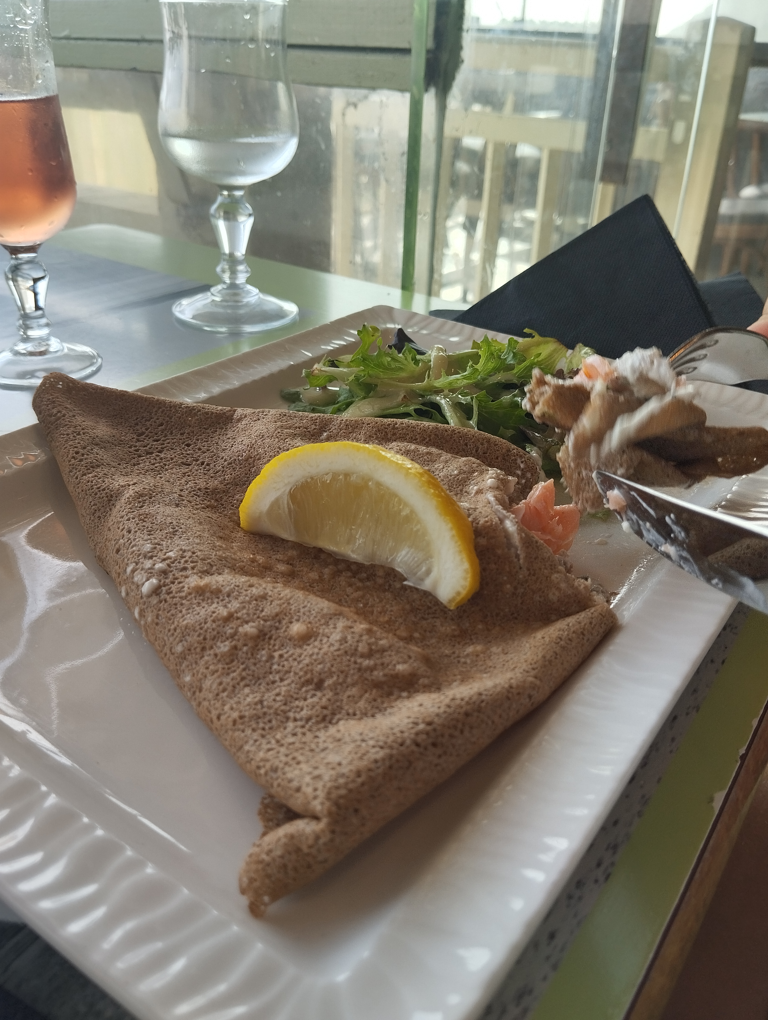 Seul point positif le personnel très sympa. Repas avec galettes, nous sommes bretons et elles n'étaient vraiment pas bonnes...saumon ultra salé...crêpe beurre sucre très moyenne. Belle vue sur la baie.