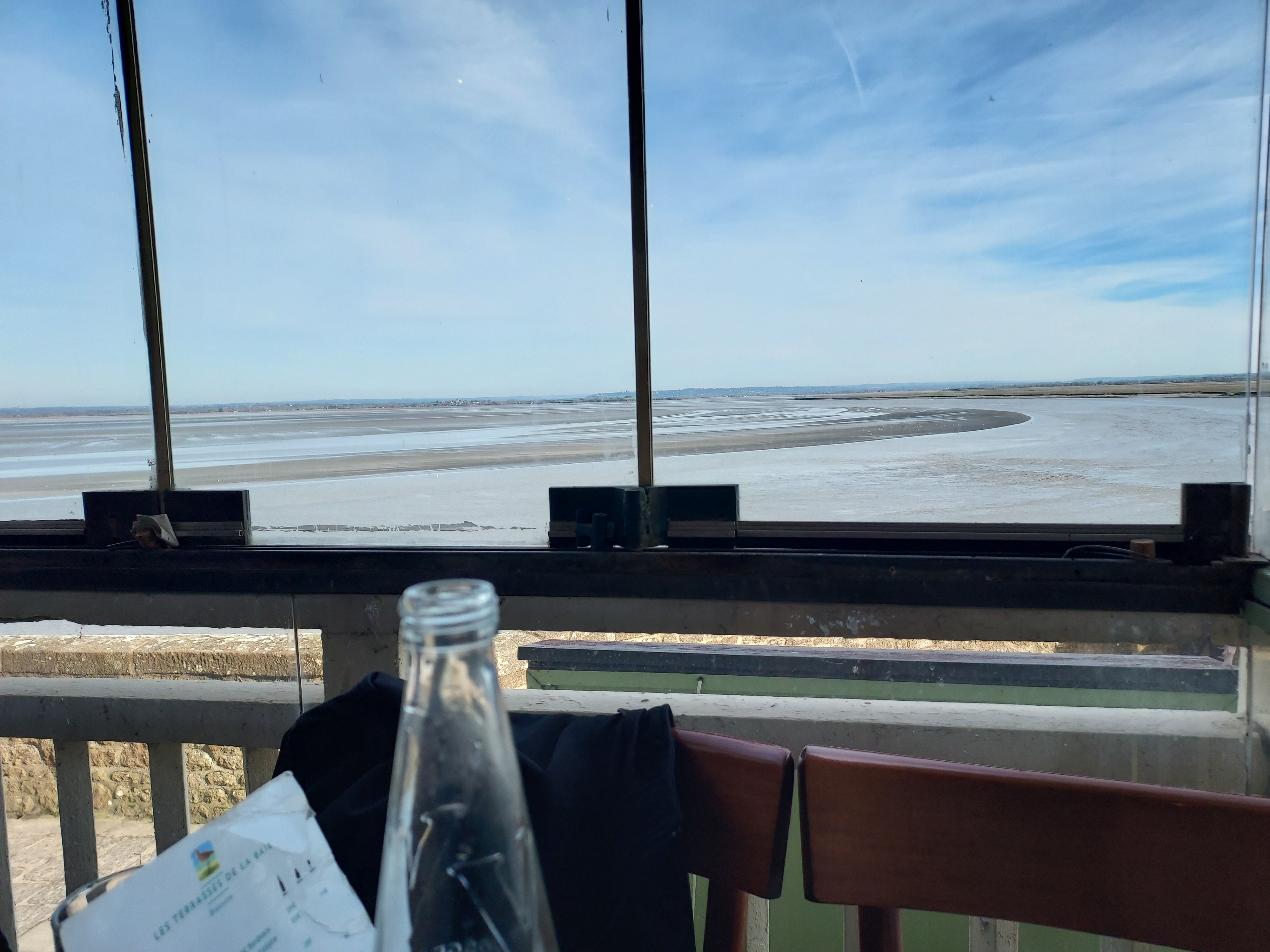 La vue sur la baie était magnifique. Le rapport qualité/prix était abordable.Nous ne pensions pas pouvoir manger à ce prix là avec ma fille, surtout au Mont Saint Michel. Je conseille en dessert le Tiramisu fait-maison au beurre salé. (Une tuerie). Et délicieuse galette saumon crème fraîche citron. Bon ! Question déco, cela reste dans son jus, besoin d'un rafraîchissement.