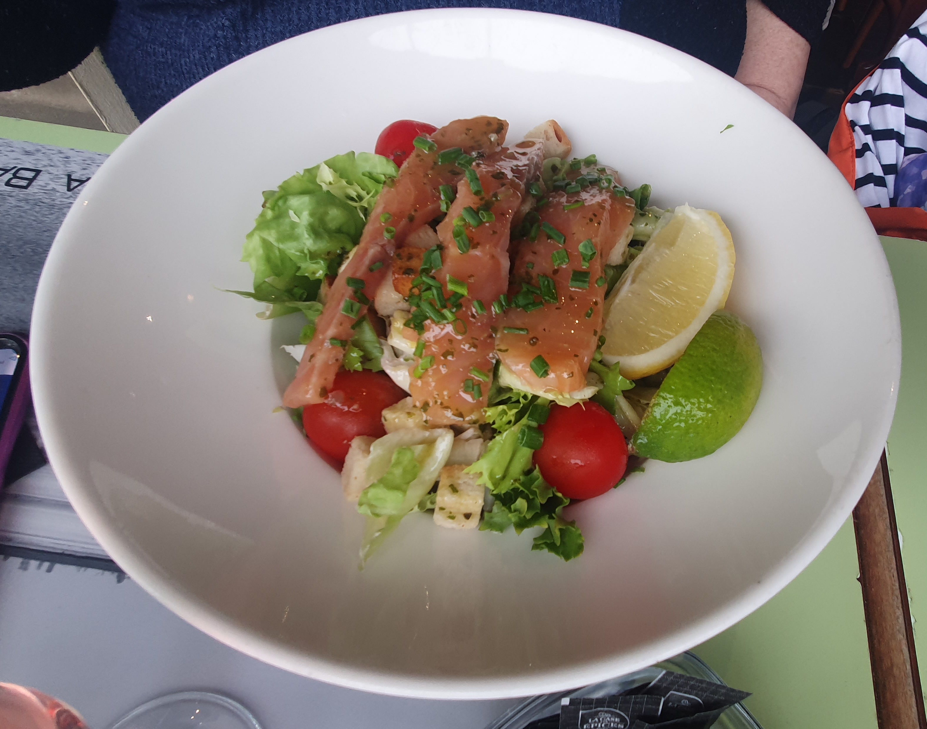 Les recommandations du personnel étaient excellentes. Ma femme a eu un repas mémorable. Il y avait un peu de sable dans ma salade et le jambon dans la quiche avait un goût un peu fort. Les vues sur la baie sont très belles et le personnel accueillant et gentil.