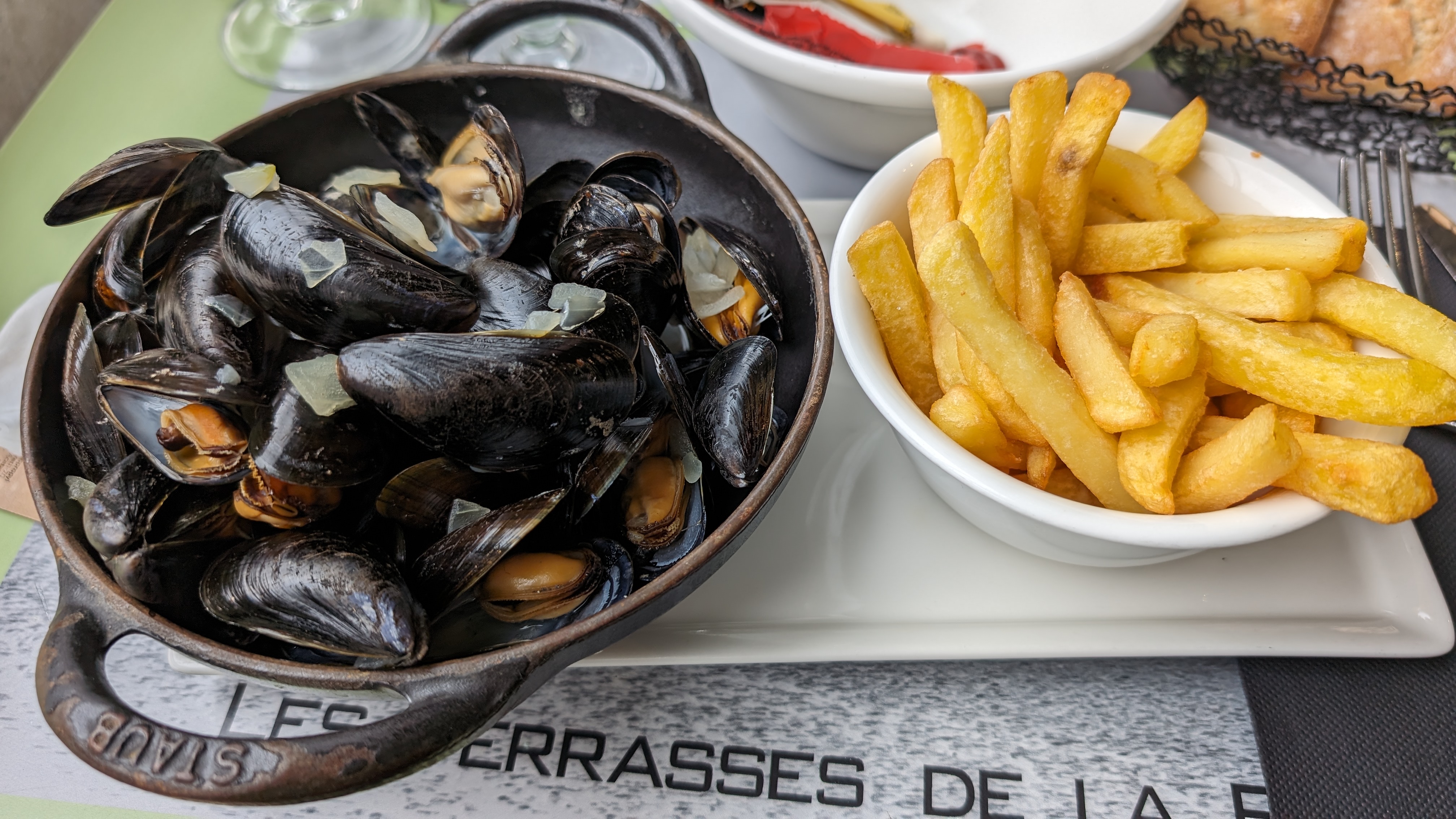 Pour le tarif très petites quantités, le rosé a plus goût d'eau que d'autre chose, les moules étaient trop cuites,les frites trop cuites limite dures, café gourmand ??? plutôt café dégustation avec que des produits surgelés. Très déçu pour le prix. Nous ne sommes qu'en mai, cela doit être pire l'été. Je ne recommande pas et ne reviendra pas.
