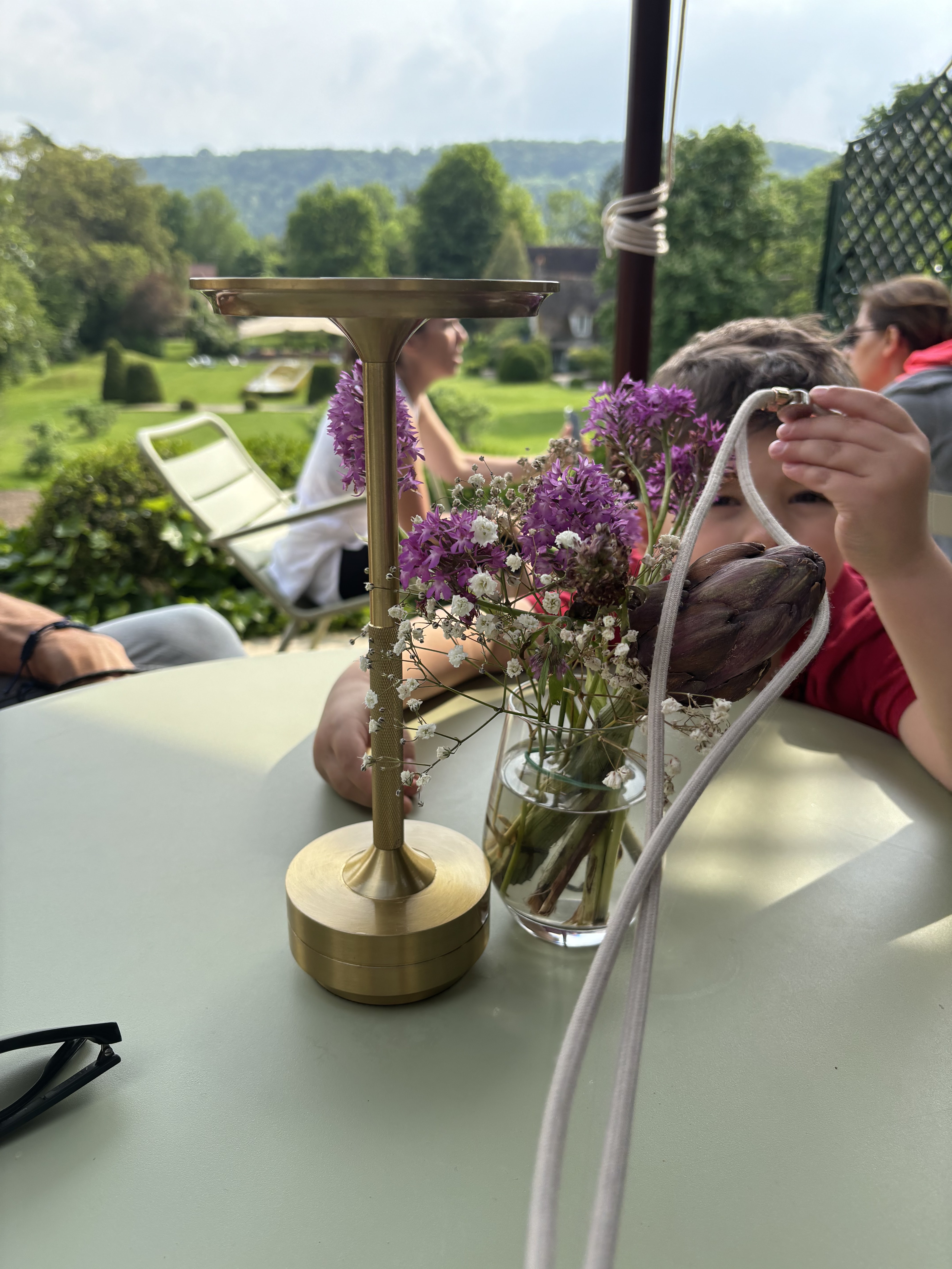 Déjeuner informel et très accueillant sur une table déplacée à l’ombre d’un arbre (et surtout des touristes 👌) dans le jardin de la Dîme ! Risottos excellents!