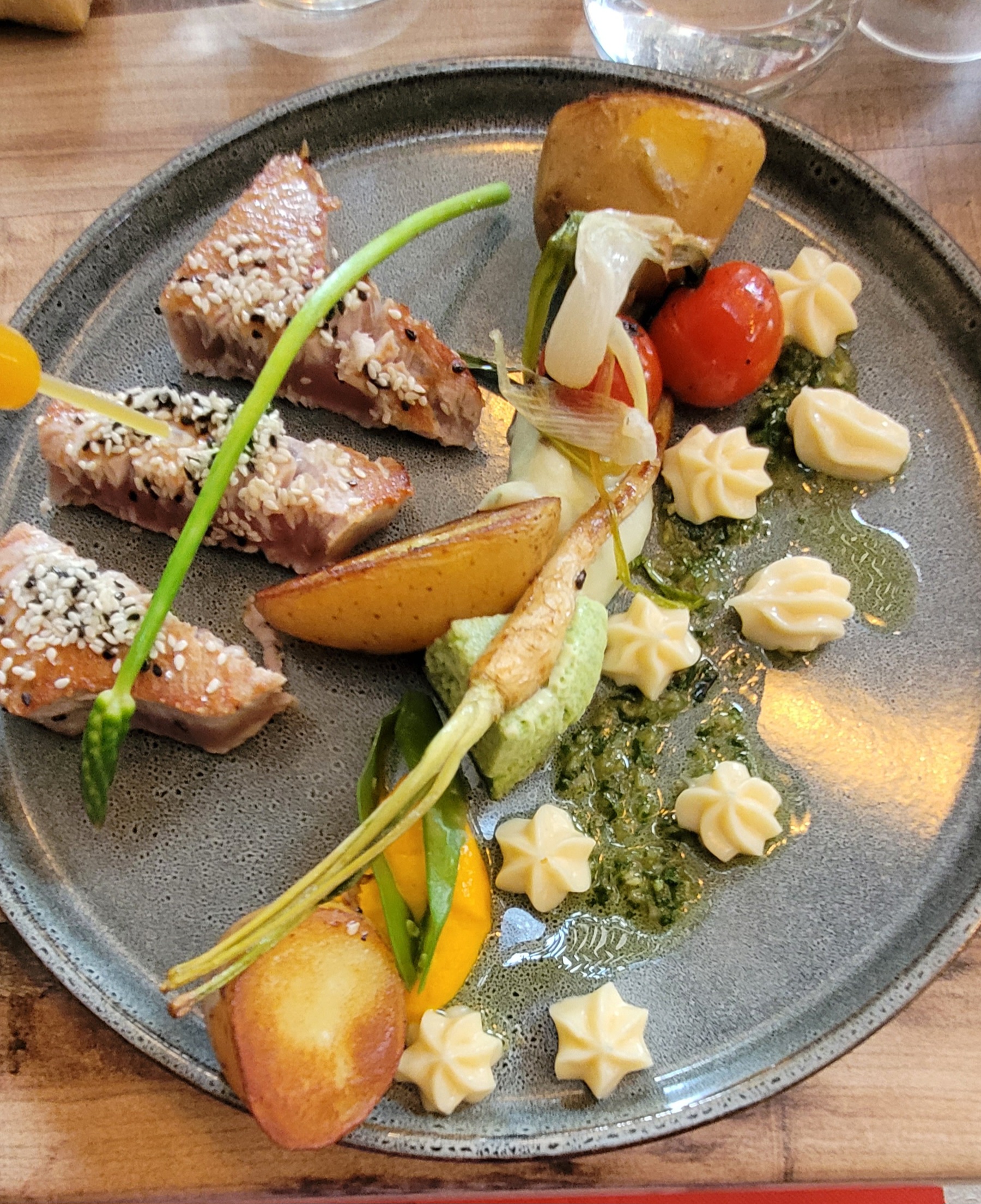 Un lieu au-dessus du bruit et de la foule. Une carte très resserrée, gourmande et goûteuse. Réservation obligatoire car peu de couverts.